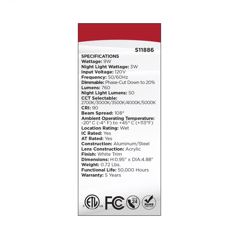 SATCO NUVO's LED 4-inch Round Downlights with Integrated Night Light provide a classic downlight with night light for additional ambiance control. Choose from five warm to cool CCTs at installation, connect an optional dimmer, or switch on-off-on at th