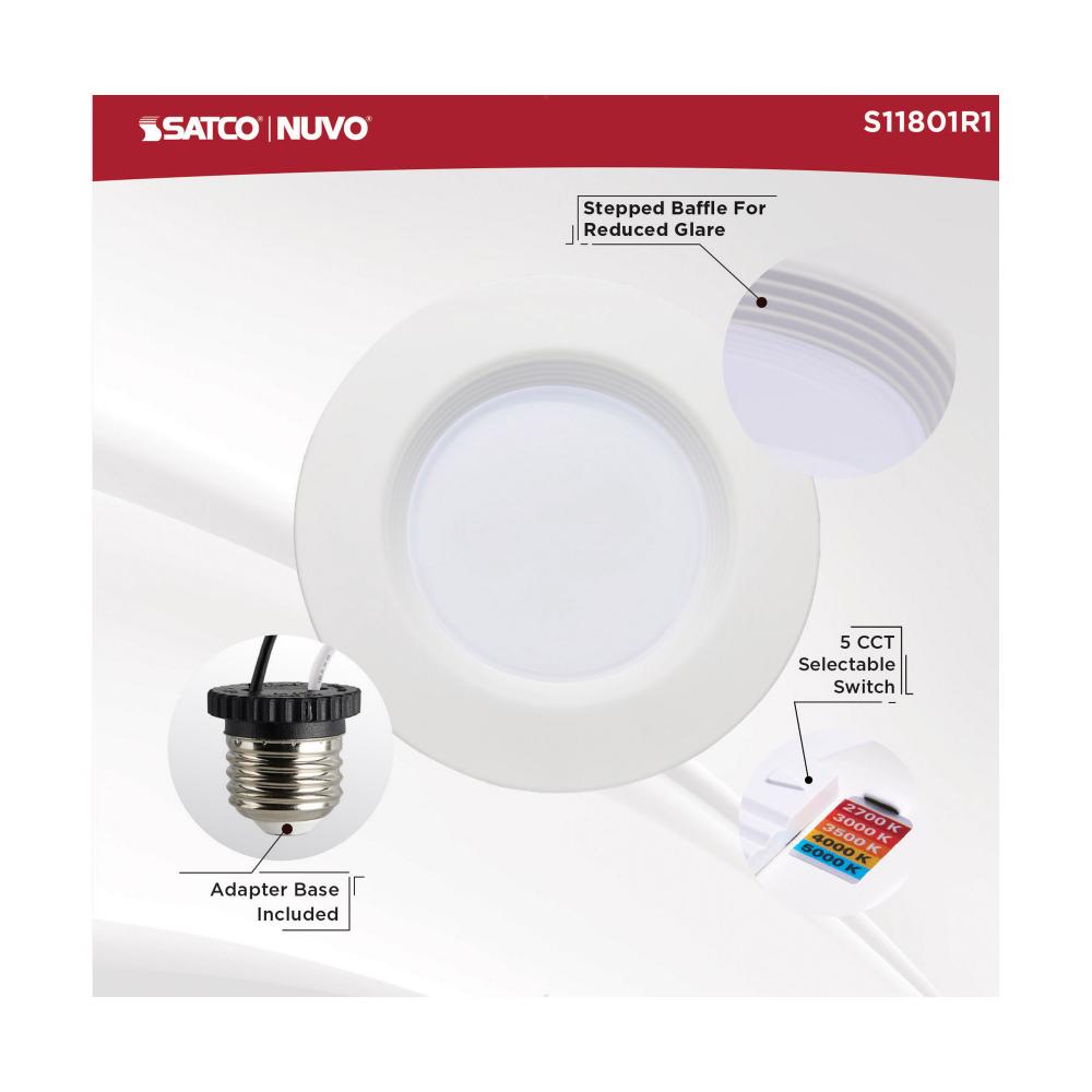 SATCO NUVO's LED Retrofit Downlights are the easy way to convert traditional recessed lighting to LED. Offered in 4-inch and 5/6-inch models, these fixtures are sized for, and come ready with, an E26 base adapter for instant illumination when installed