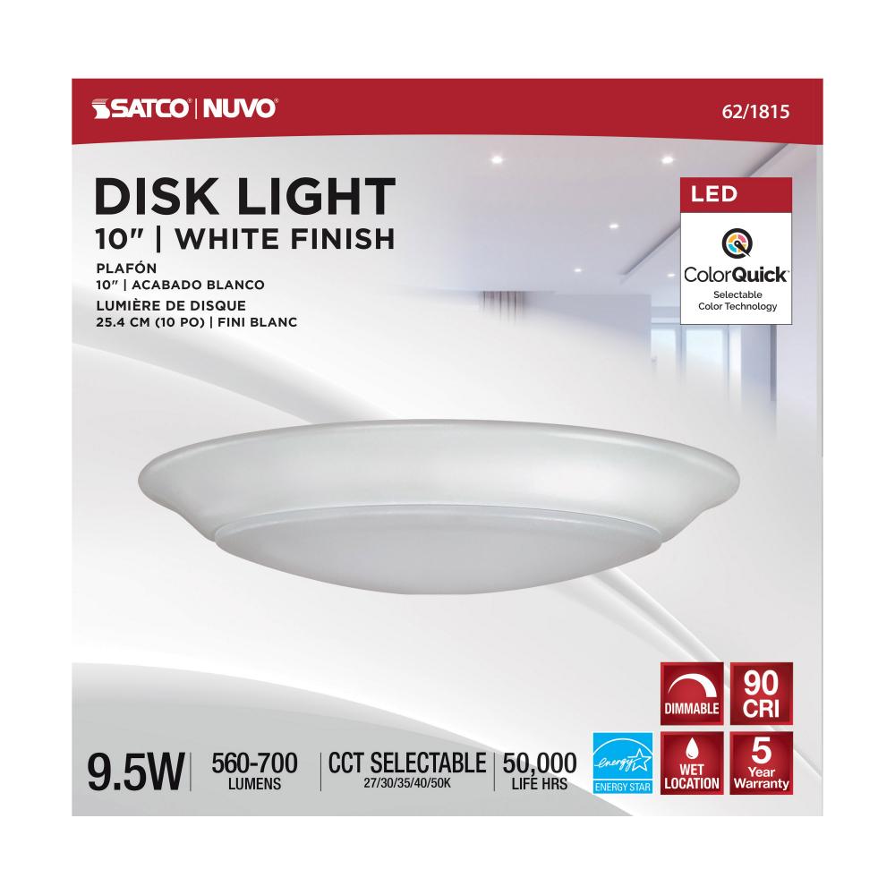 Introducing SATCO NUVO 62-1815, a 10-inch customizable lighting solution with CCT selectable options from 2700K to 5000K. This 9.5-watt fixture comes in a white finish and features a high CRI of 93 for exceptional color accuracy. It offers 2.5kV surge prot