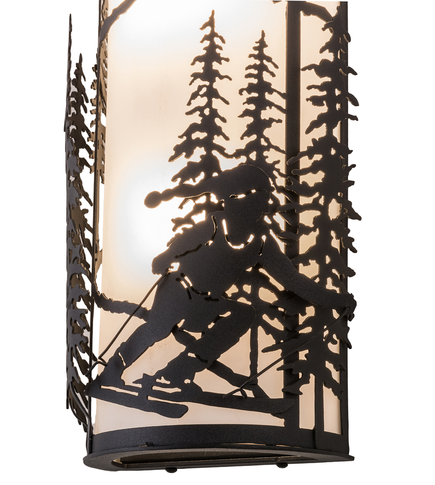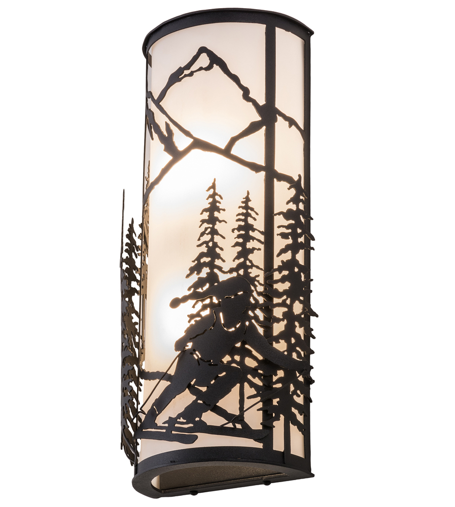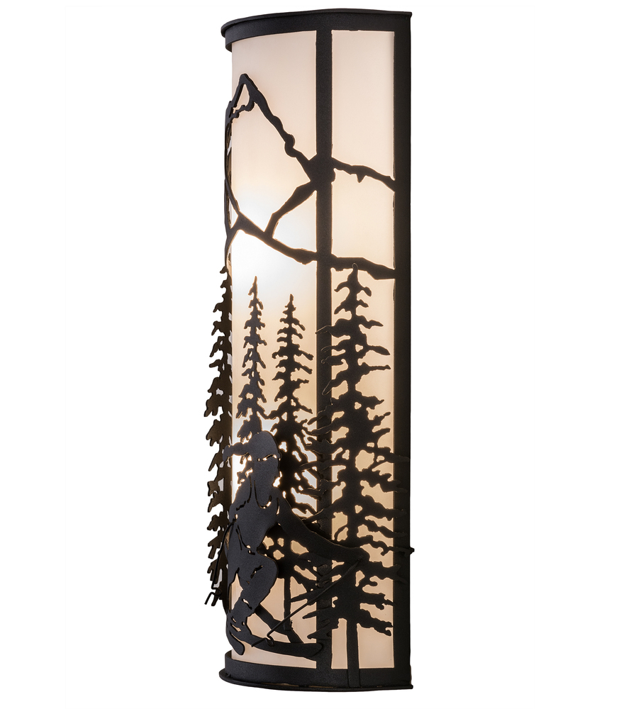 Winter skier slaloms down the slopes during an epic skiing event as ambient lighting is diffused beautifully through Statuario Idalight; which is enhanced by a frame and hardware featured in a Black finish. This fixture is perfect as a wall fixture in any room where you want to make a design statement; whether it is located in a lodge; resort; retailer; home or camp. The fixture is handcrafted in the Meyda manufacturing facility; located at the foothills of the Adirondack Mountains; not far from Lake Placid; home of the 1932 and1980 Winter Olympics. UL and cUL listed for dry and damp locations.