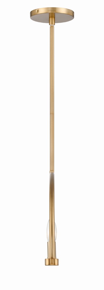 The Abbott linear chandelier presents a simple, streamlined shape and clean lines. The open-concept frame features a metal arch and a sleek, narrow rod with a series of thin bulbs. Mounted above an island or over a dining room table, this fixture appeals to a minimalist sense of style. The Abbott comes in vibrant gold and black finish.