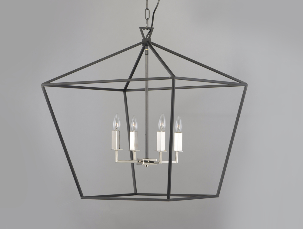 Open air frames finished in Black with Polished Nickel accents makes a simplistic yet dramatic statement for any interior design. Larger scale pieces fill up space without breaking the budget.