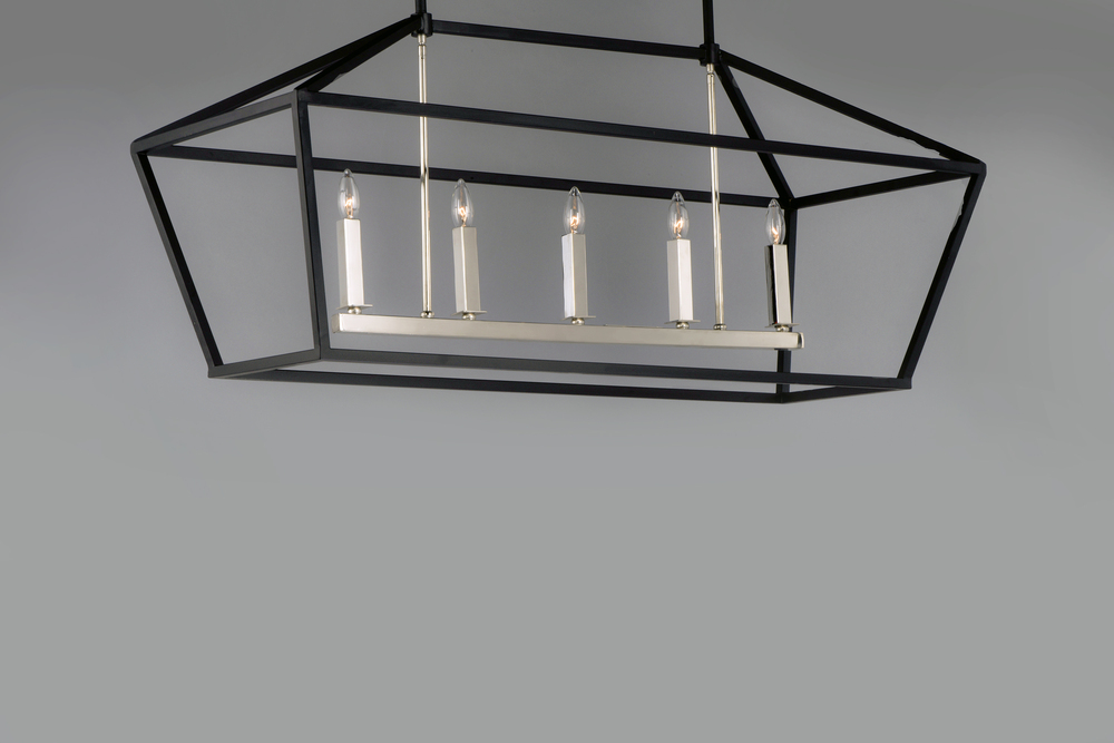 Open air frames finished in Black with Polished Nickel accents makes a simplistic yet dramatic statement for any interior design. Larger scale pieces fill up space without breaking the budget.