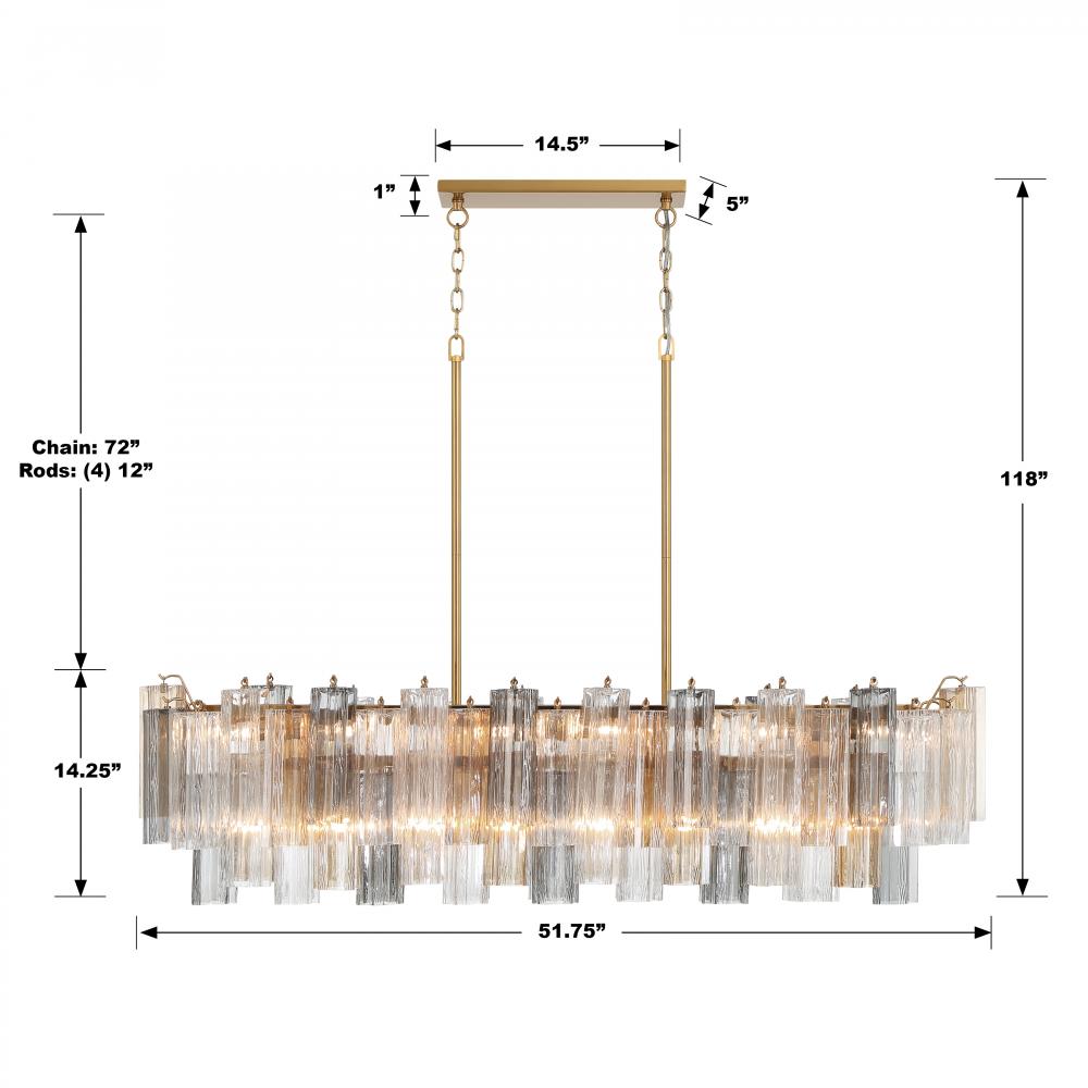 The captivating Addis Lighting Collection is a modern-day interpretation of the iconic mid-century Tronchi chandelier. Inspired by its predecessor's sleek lines and geometric shapes, the Addis features a polished Chrome or Aged Brass metal frame that exudes sophistication and style. Its unique design showcases transparent tiers of textured Tronchi glass tubes, forming a mesmerizing 5-point rounded star shape. Choose from a range of glass colors, including clear, amber, smoke, and white, or the stunning Autumn option, which features a captivating multicolor disposition of amber, clear, and smoke Tronchi glass. The Addis Lighting Collection offers various sizes and finishes, allowing you to find the perfect fit for your space while adding a touch of timeless elegance.