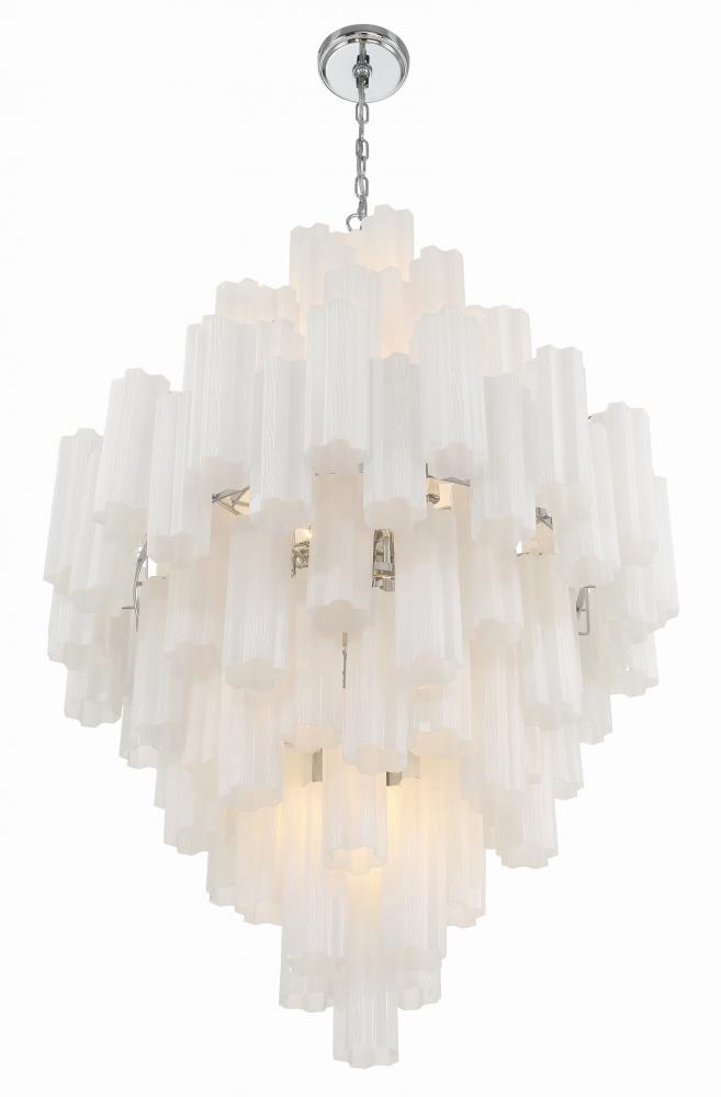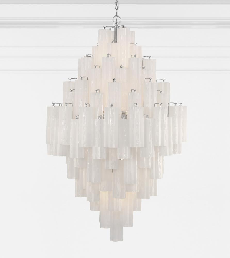The captivating Addis Lighting Collection is a modern-day interpretation of the iconic mid-century Tronchi chandelier. Inspired by its predecessor's sleek lines and geometric shapes, the Addis features a polished Chrome or Aged Brass metal frame that exudes sophistication and style. Its unique design showcases transparent tiers of textured Tronchi glass tubes, forming a mesmerizing 5-point rounded star shape. Choose from a range of glass colors, including clear, amber, smoke, and white, or the stunning Autumn option, which features a captivating multicolor disposition of amber, clear, and smoke Tronchi glass. The Addis Lighting Collection offers various sizes and finishes, allowing you to find the perfect fit for your space while adding a touch of timeless elegance.