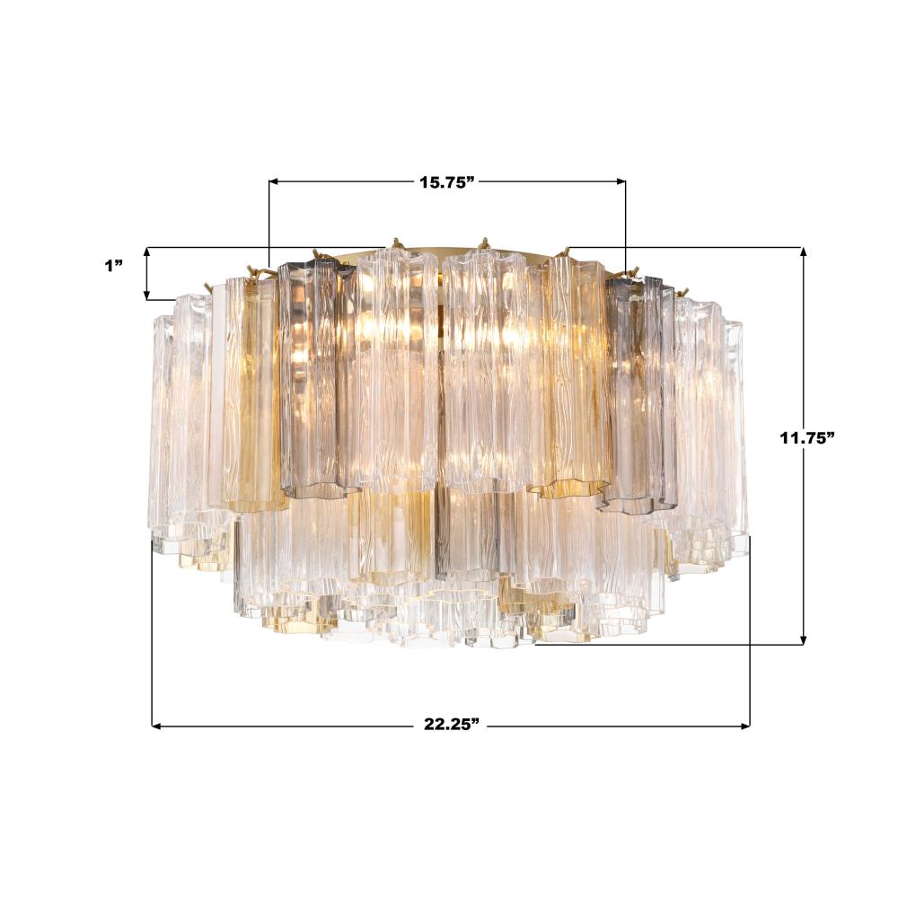 The captivating Addis Lighting Collection is a modern-day interpretation of the iconic mid-century Tronchi chandelier. Inspired by its predecessor's sleek lines and geometric shapes, the Addis features a polished Chrome or Aged Brass metal frame that exudes sophistication and style. Its unique design showcases transparent tiers of textured Tronchi glass tubes, forming a mesmerizing 5-point rounded star shape. Choose from a range of glass colors, including clear, amber, smoke, and white, or the stunning Autumn option, which features a captivating multicolor disposition of amber, clear, and smoke Tronchi glass. The Addis Lighting Collection offers various sizes and finishes, allowing you to find the perfect fit for your space while adding a touch of timeless elegance.