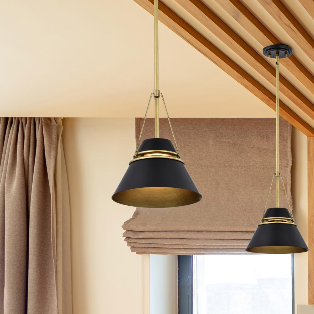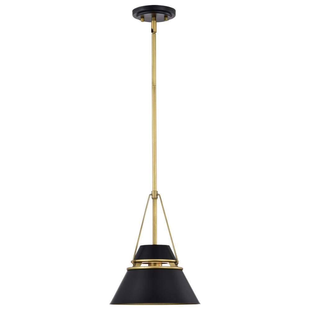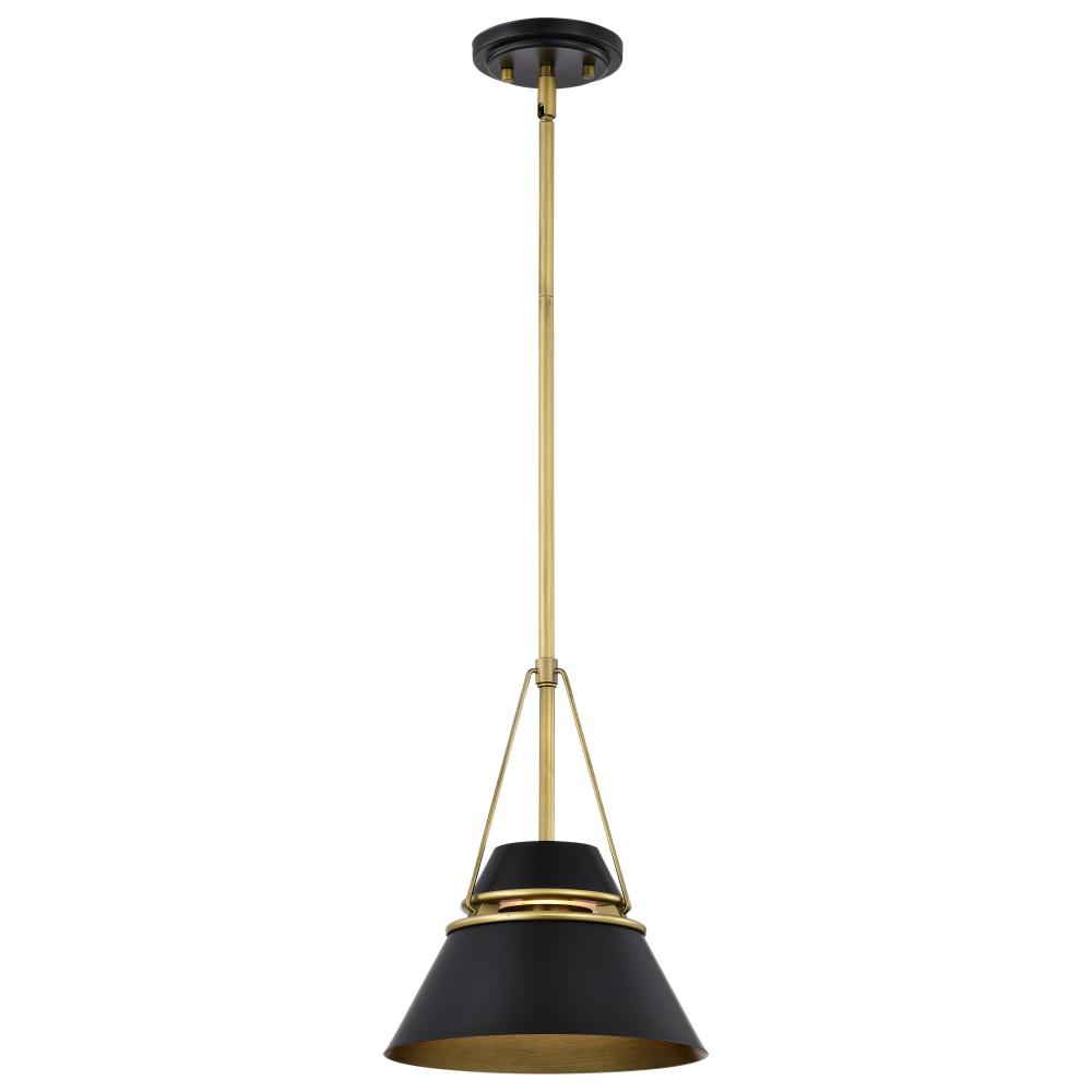 Adina 1 Light Small Pendant; Matte Black and Natural Brass Finish