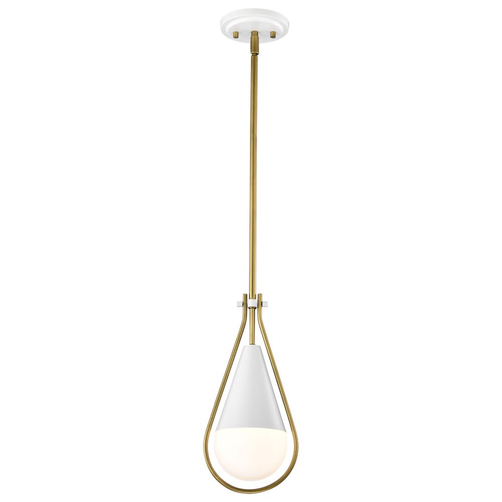 Admiral 1 Light Pendant; 6 Inches; Matte White and Natural Brass Finish; White Opal Glass