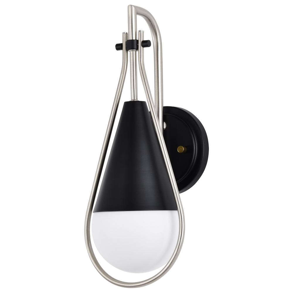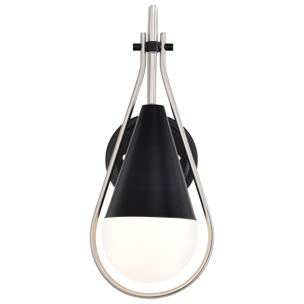 Admiral 1 Light Wall Sconce; Matte Black and Brushed Nickel Finish; White Opal Glass