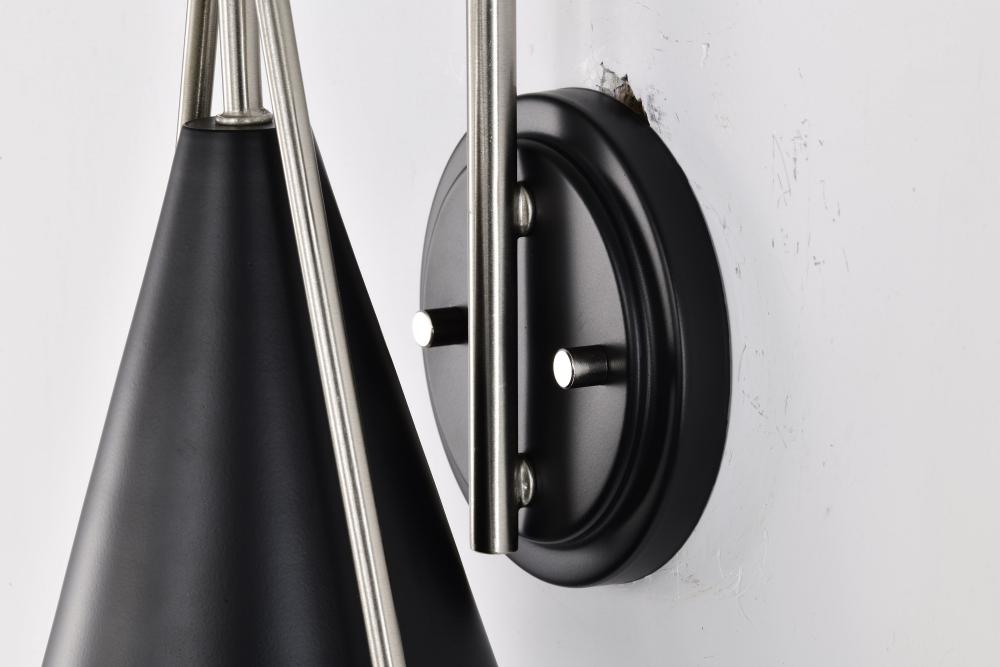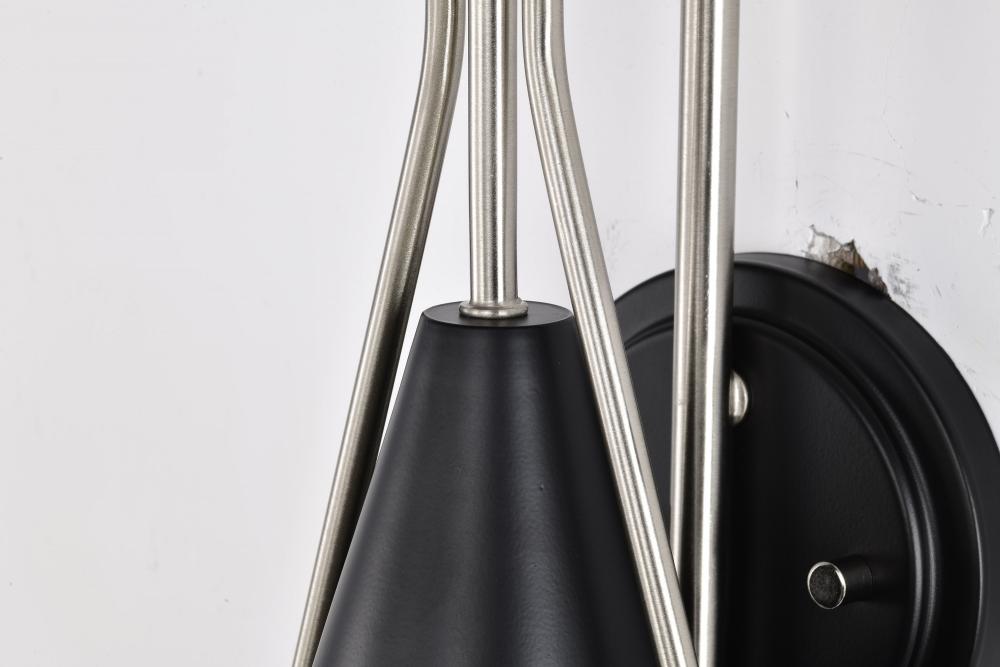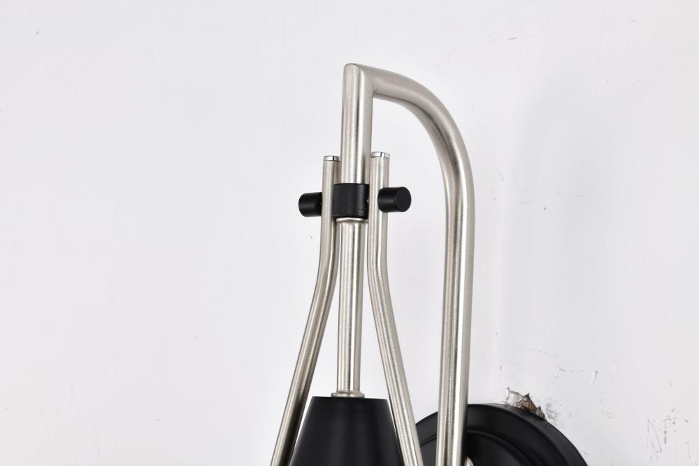 A modern collection with a twist, the Admiral 60-7911 one light wall sconce features a dual finish, unique design, and a fashionable statement for home luminaires. A suspended tear-dropped shape is comprised of matte black with brushed nickel elements enco
