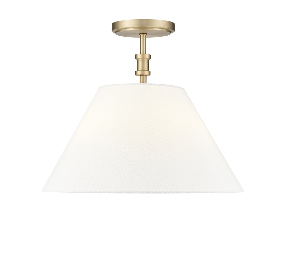 Refined and graceful, the Adorra Family puts a modern twist on classic Regency styling and creates a thoughtful design statement throughout any home. Crisp white linen shades complement the beautifully detailed fixtures in polished nickel, vintage brass, or matte black. Available as a 3-light semi-flush mount, 3-light candelabra, or 1-light sconces, these fixtures enhance any interior design scheme with a polished touch.