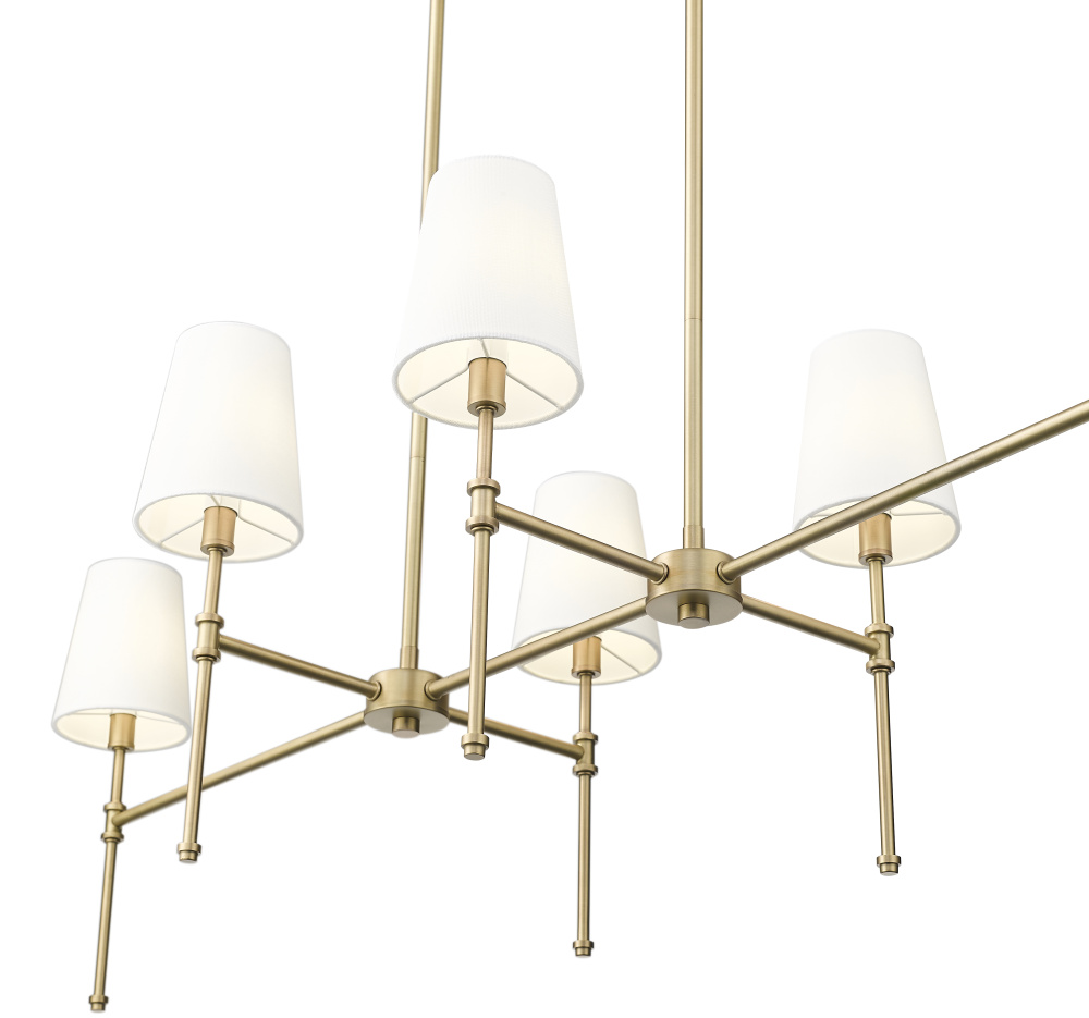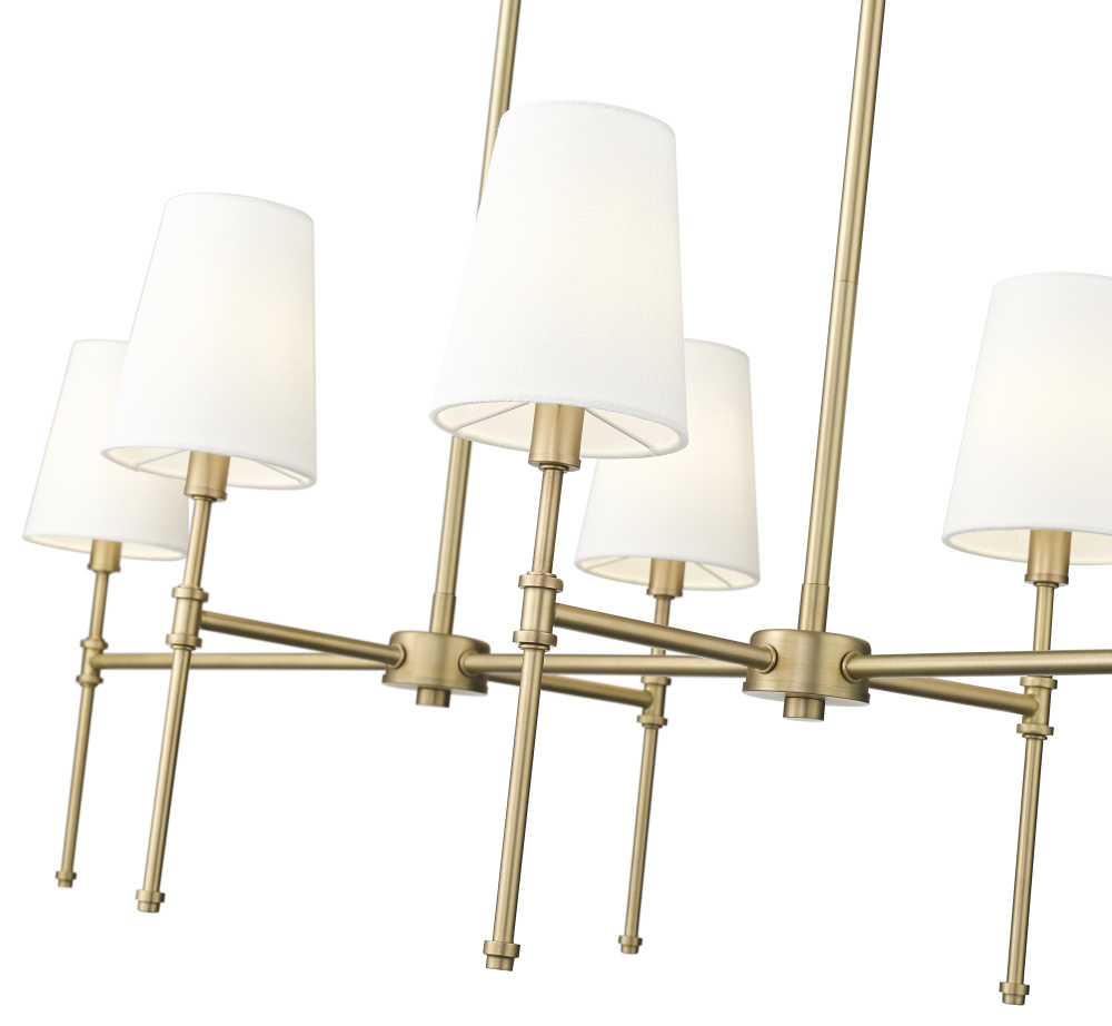 Refined and graceful, the Adorra Family puts a modern twist on classic Regency styling and creates a thoughtful design statement throughout any home. Crisp white linen shades complement the beautifully detailed fixtures in polished nickel, vintage brass, or matte black. Available as a 3-light semi-flush mount, 3-light candelabra, or 1-light sconces, these fixtures enhance any interior design scheme with a polished touch.