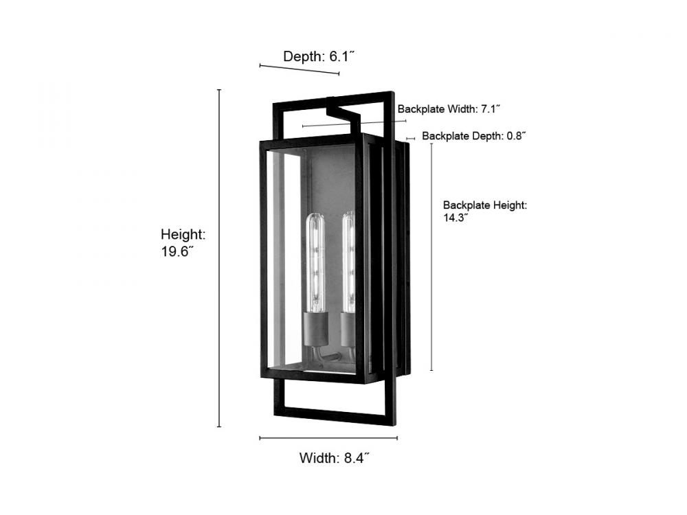 This outdoor wall sconce is 8.4 in. width x 19.6 in. height