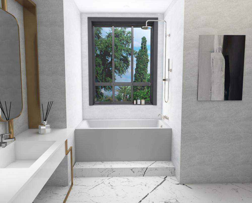Immerse yourself in the pinnacle of modern bathing luxury with our alcove-style bathtub. Crafted with precision from a blend of top-tier acrylic, resin, and fiberglass, the bathtub is the epitome of style and functionality. Choose between a left or right drain configuration to suit your bathroom layout, ensuring a perfect fit for your space.