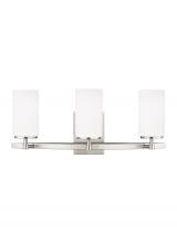 The Alturas three light vanity fixture in chrome provides abundant light for your bath vanity, while adding a layer of today's style to your interior design. The silhouette of the modern Alturas lighting collection by features an interlocking, spherical steel frame, which harkens back to the Unisphere constructed for the 1964 New York World's Fair. The minimalist Alturas Collection draws the eye to the soft, warm glow of the light emitted from the cylindrical Satin Etched glass shades. The full assortment includes three-, five- and nine-light chandeliers, a one-light mini pendant, a three-light pendant, a two-light semi flush which is convertible into a pendant, and one-, two-, three- and four-light bath fixtures. All fixtures are offered in Brushed Oil Rubbed Bronze, Brushed Nickel and Satin Bronze finishes, the bath fixtures are also offered in Chrome finish. Incandescent and ENERGY STAR-qualified LED lamping are available; all fixtures are California Title 24 compliant.