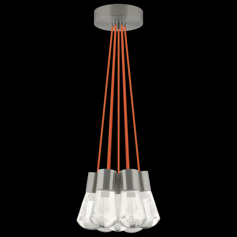 The Alva pendant, by Sean Lavin for Visual Comfort Modern, is a classic Edison-style squirrel cage lamp reincarnated as a modern socket and cord-style LED pendant light. Alva features a powerful downward-firing LED that is smartly hidden within the "socket" then combined with a solid "bulb" of pure optic crystal. Intricately detailed "filaments" are laser-etched into the crystal for a visually intriguing light fixture. With a modern take on the cord-style trend Alva is customizable to your style. Choose from a lively combination of finishes and cord colors to match any décor in your kitchen, bathroom and living room. Also available as a 3-, 7-, and 11-lite chandeliers (canopy included).