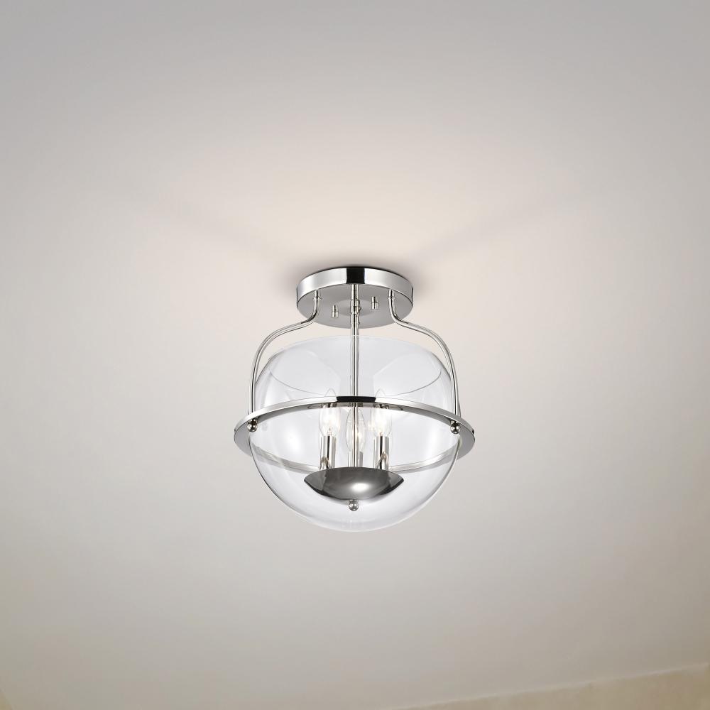 Elegant, transitional allure completes the Amado 60-7822 medium semi-flush mount with it's unassuming style. The sleekness of polished nickel brings graceful refinement and the clear glass bowl delicately showcases the light and is encompassed in grace