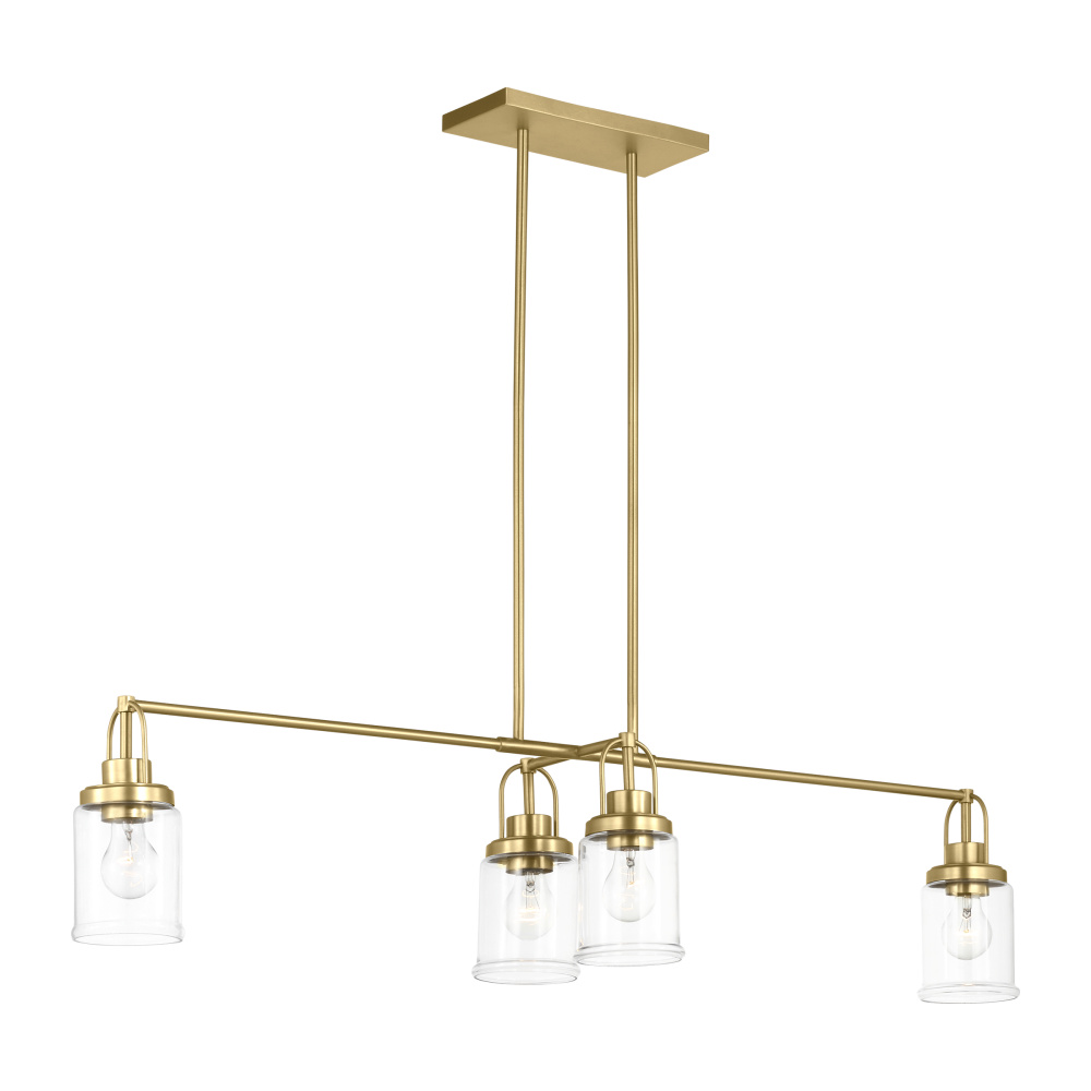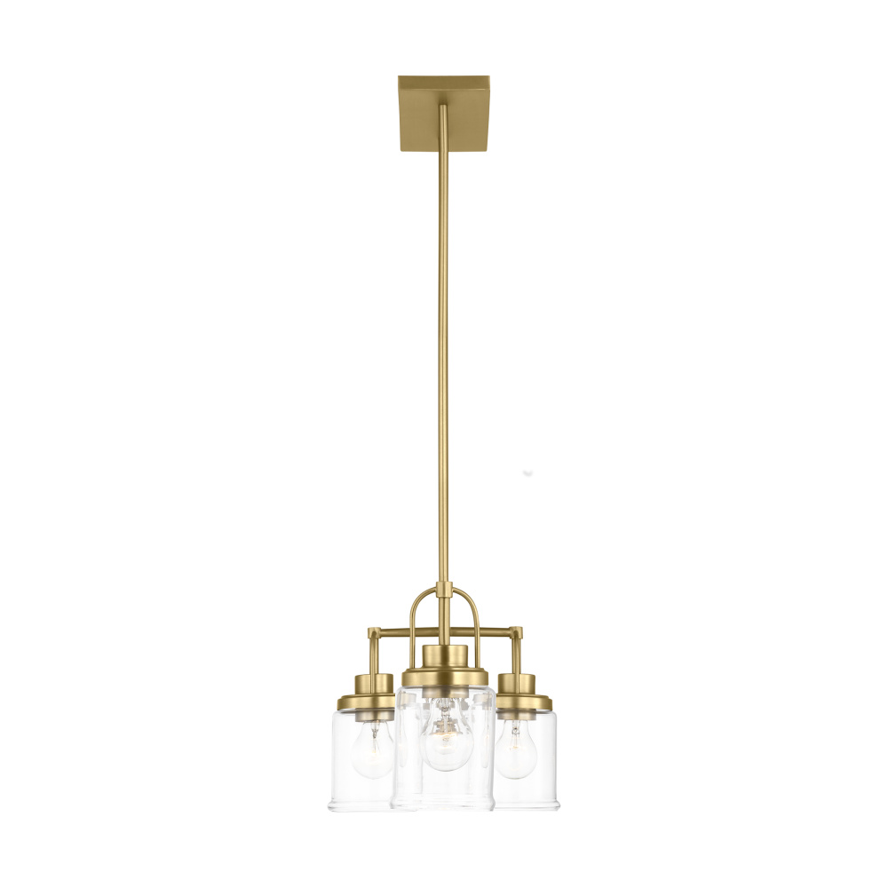 Crafted with Steel in a Satin Brass finish with clear glass shades