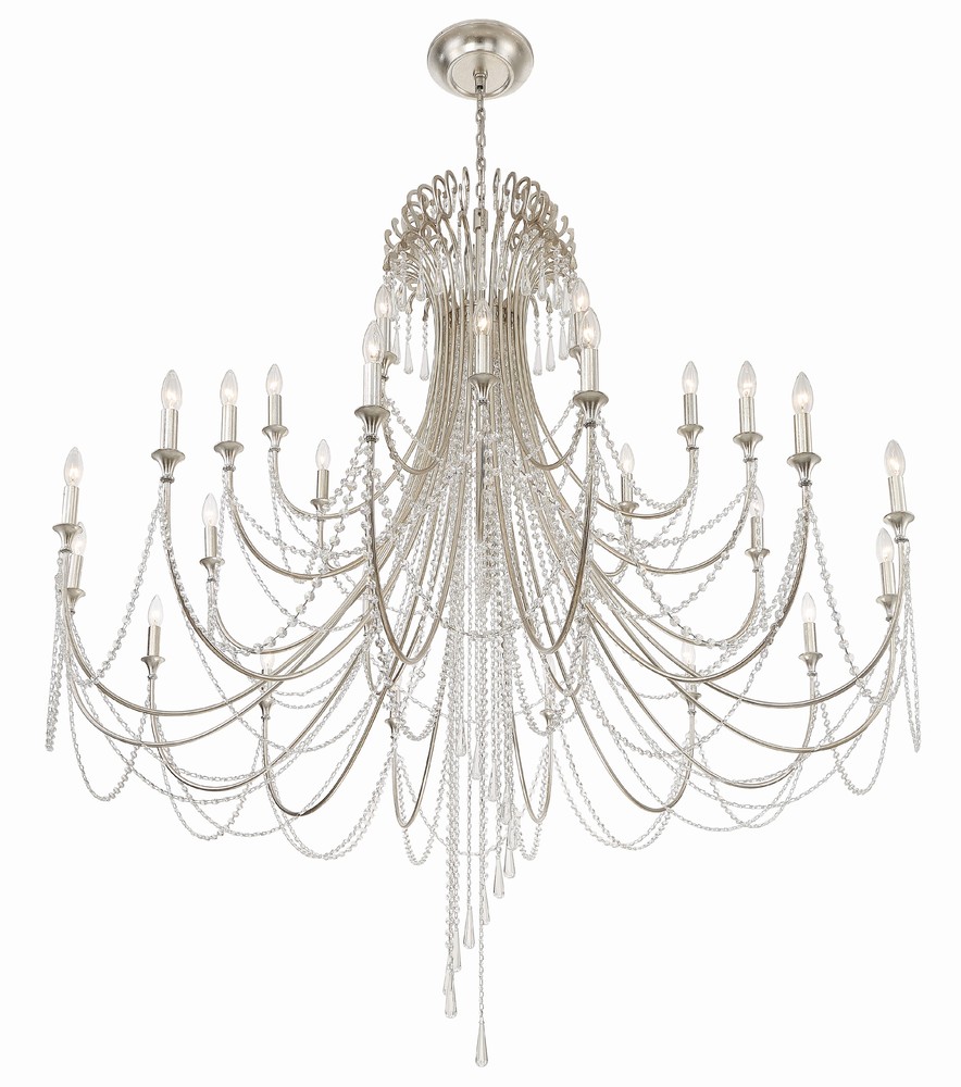 The Arcadia collection features a simple, transitional metal framework that is elegantly dressed with a beautiful crystal draping.