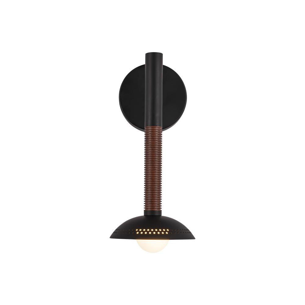 Add distinctive character to your space with the Arden lighting collection. Featuring ribbed details for added texture, Arden offers versatility with a decorative half shade or exposed opal glass globe for a minimalist mood. The black finish, accented by walnut wood veneer, brings a rustic or industrial charm to the design.