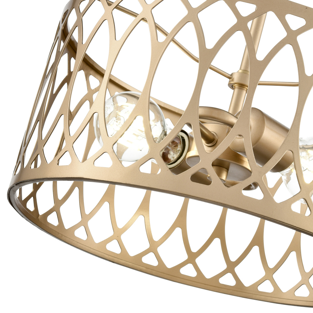Characterized by a contemporary interpretation of delicate 13th-century Moorish-style patterns, the Arelyn Collection of 2-light semi-flush fixtures and 2- or 6-light pendants, is true a work of art. The organic lines of the fixtures meld perfectly with any interior design aesthetic, from contemporary to classic elegance. The beautifully sculptured metalwork, available in either matte black or modern gold, creates a stunning light display, perfect for dining room, bedroom, or foyer.