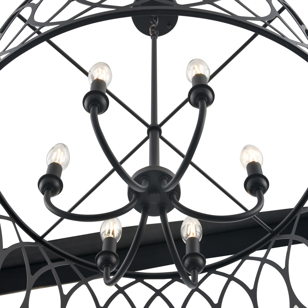 Characterized by a contemporary interpretation of delicate 13th-century Moorish-style patterns, the Arelyn Collection of 2-light semi-flush fixtures and 2- or 6-light pendants, is true a work of art. The organic lines of the fixtures meld perfectly with any interior design aesthetic, from contemporary to classic elegance. The beautifully sculptured metalwork, available in either matte black or modern gold, creates a stunning light display, perfect for dining room, bedroom, or foyer.