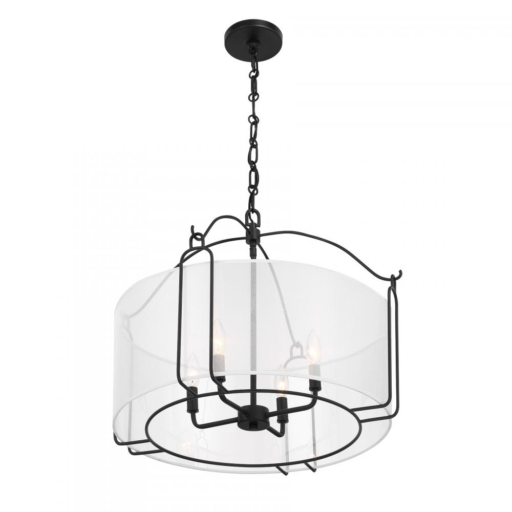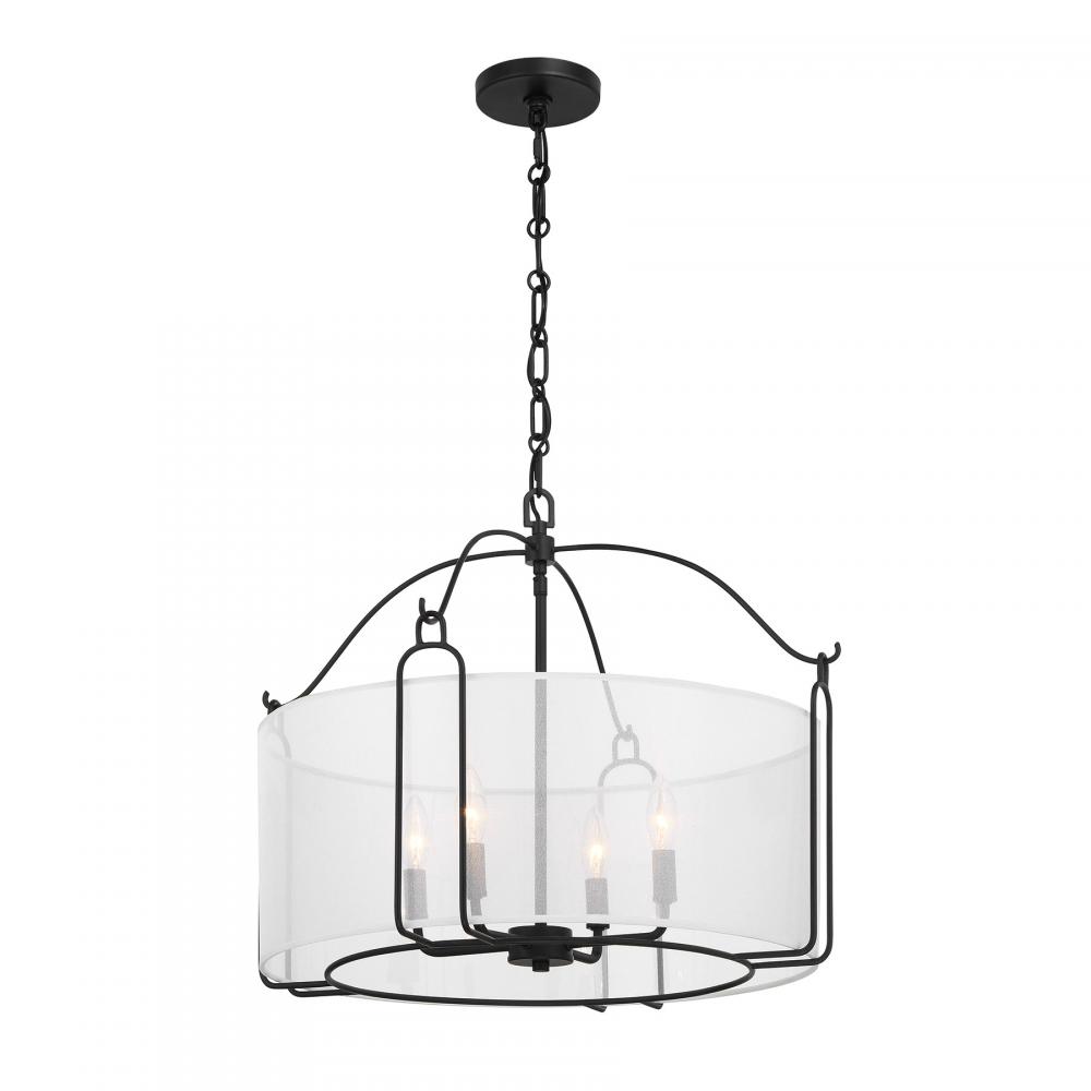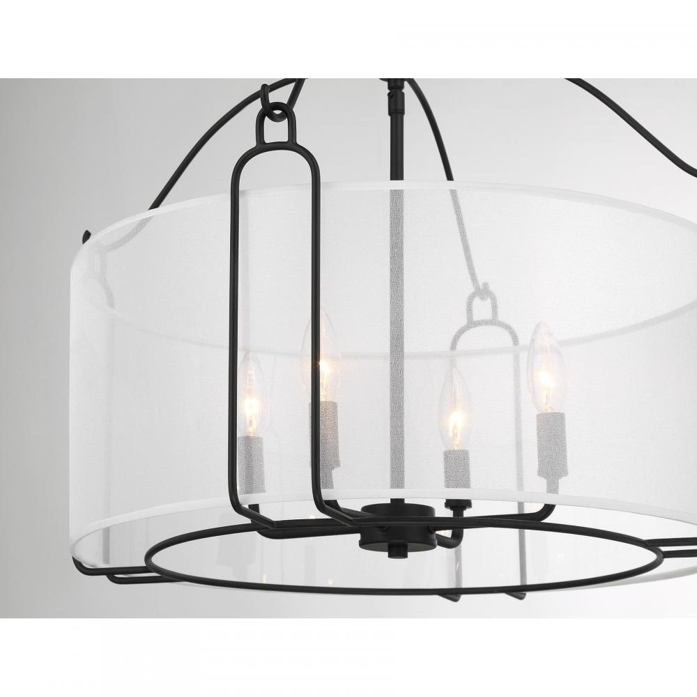 Create a soft and subtle glow with the Savoy House Ashlay 4-light pendant. Its drum shade of delicate organza is held in place on sleek and curving arms finished in Matte Black. Ashlay is 19" in height and 22" in width. Uses four candelabra size bulbs of up to 60 watts per bulb. Bulbs not included. Comes with 120" of chain.