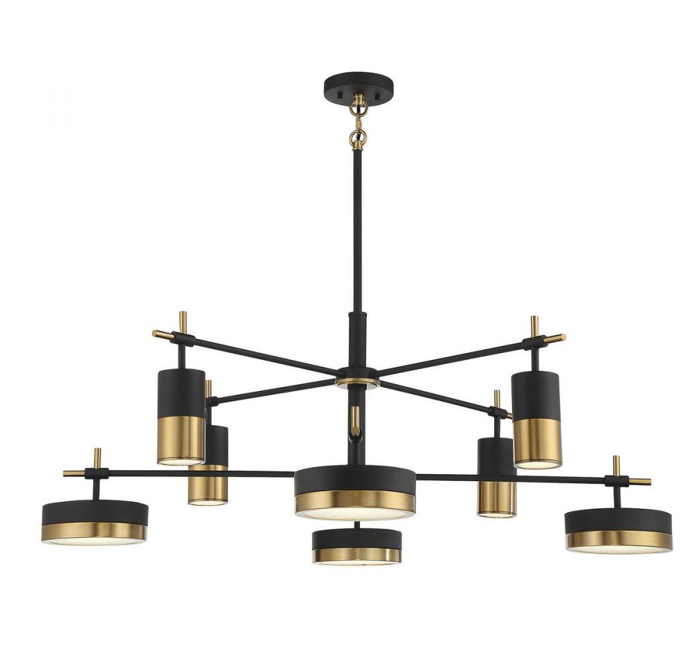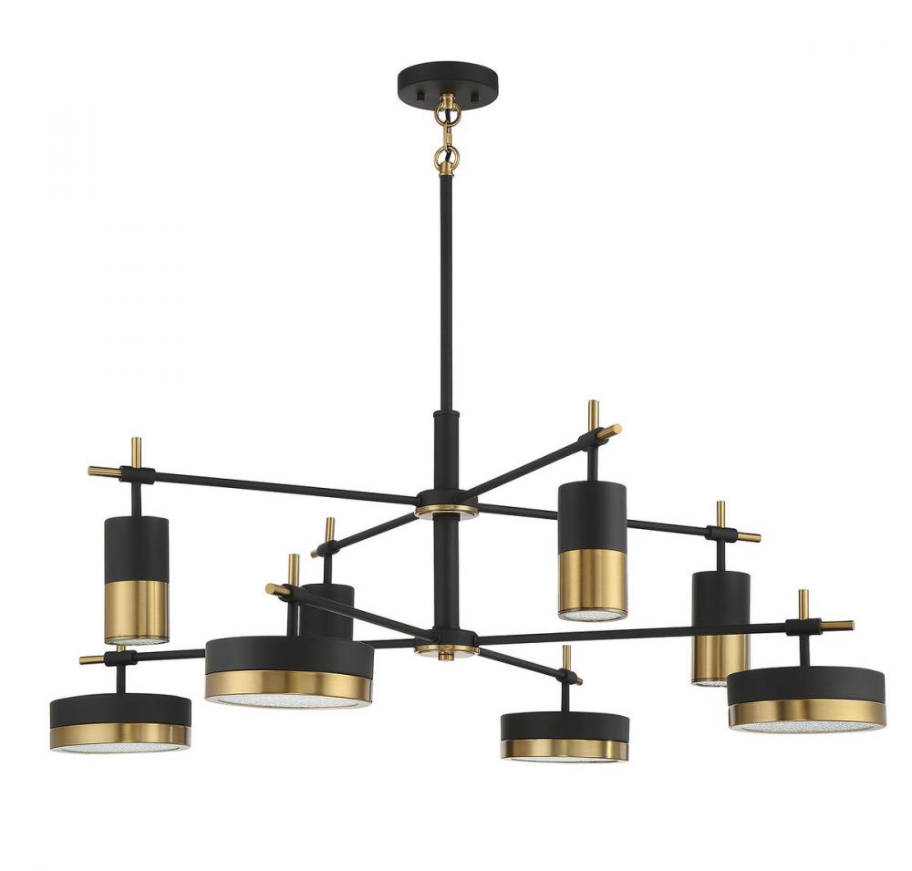 Ashor 8-Light LED Chandelier in Matte Black with Warm Brass Accents