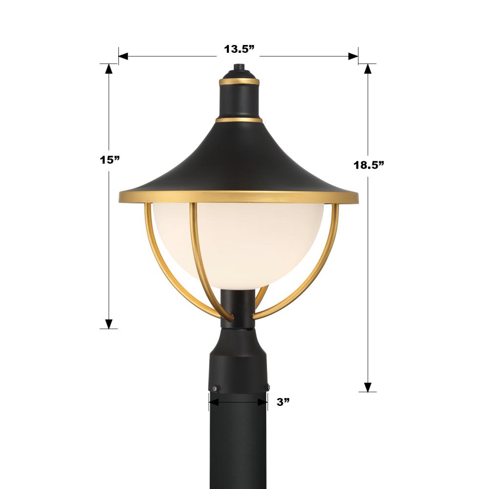 Crystorama ATL-709-MK-TG - Atlas 1 Light Matte Black + Textured Gold Outdoor Post