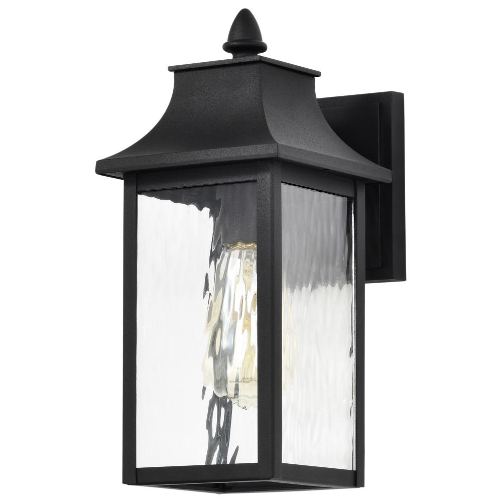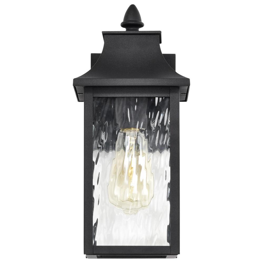 Austen Collection Outdoor 13 inch Small Wall Light; Matte Black Finish with Clear Water Glass