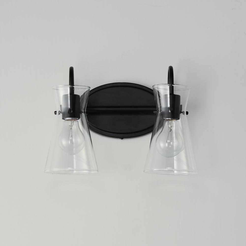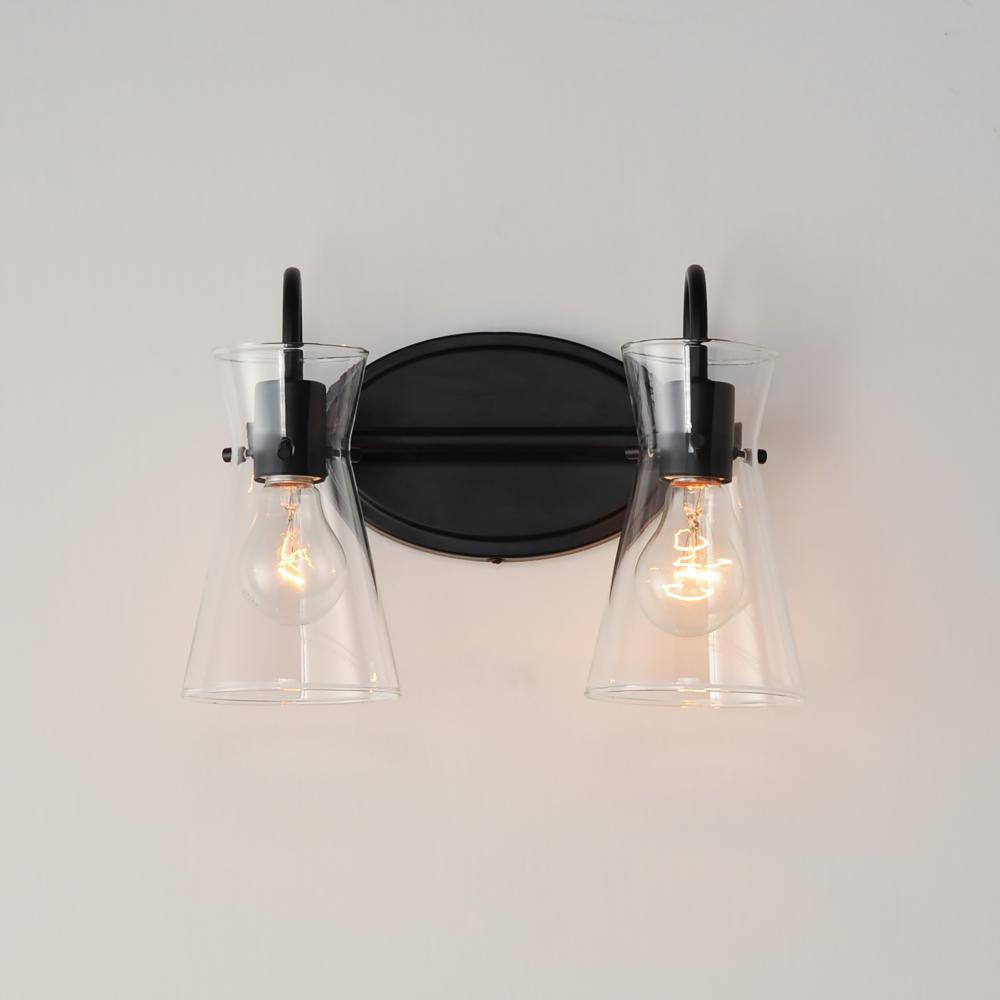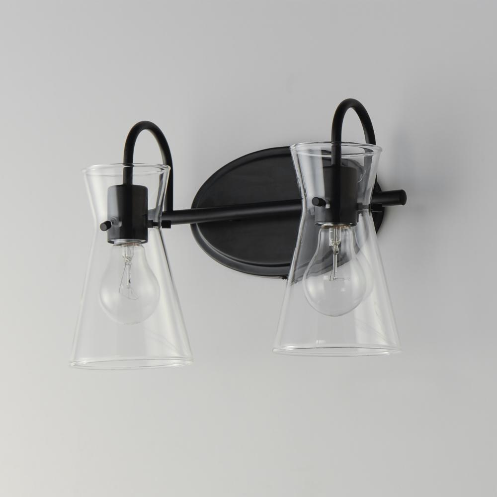 Suspended by three pin connections, the sharp silhouette of Ava's angular glass provides a designer look to enhance your bathroom design. Using Clear glass and a variety of complementary metal finishes the sconces are available in Black, Polished Chrom