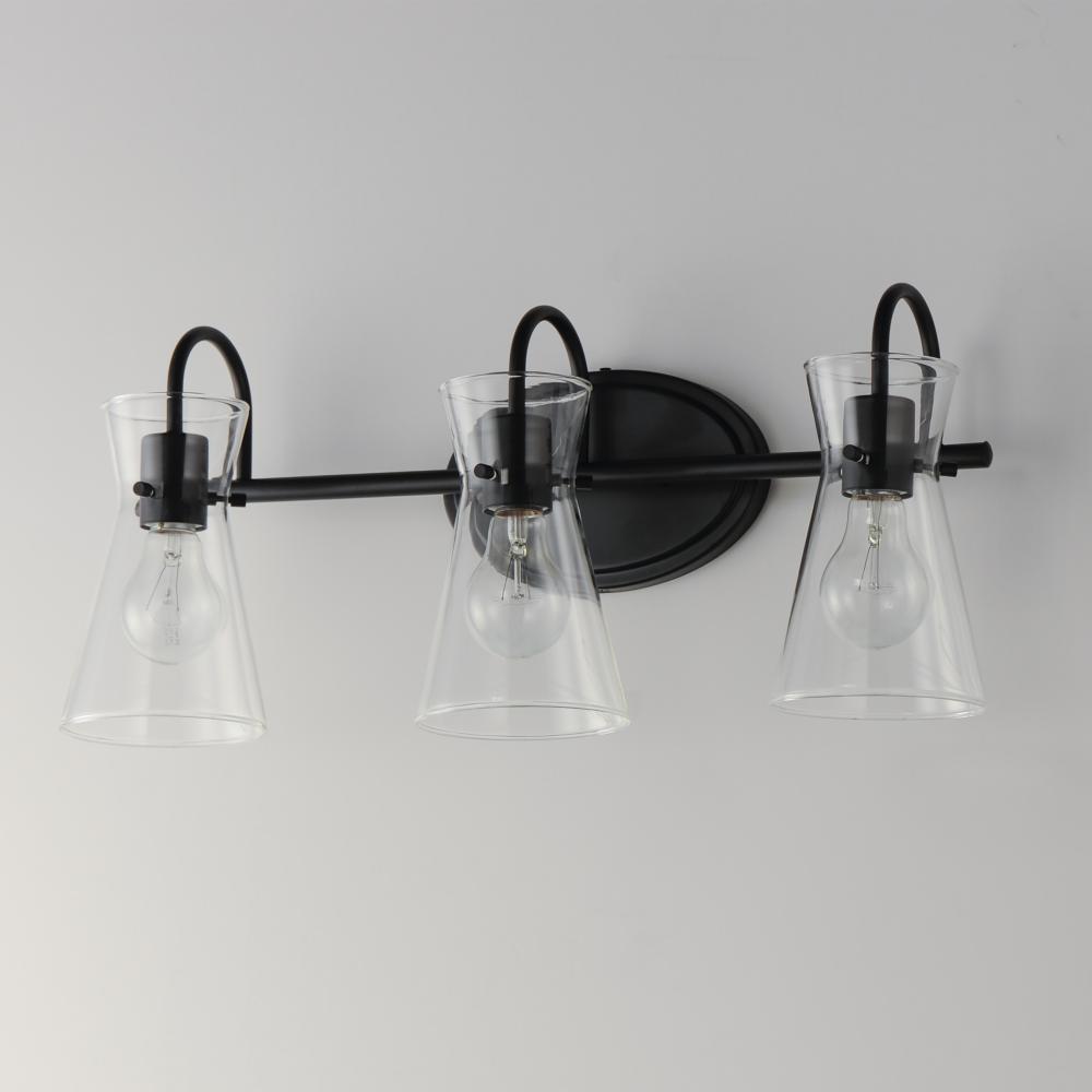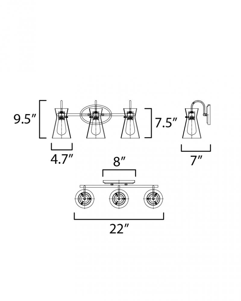 Suspended by three pin connections, the sharp silhouette of Ava's angular glass provides a designer look to enhance your bathroom design. Using Clear glass and a variety of complementary metal finishes the sconces are available in Black, Polished Chrom