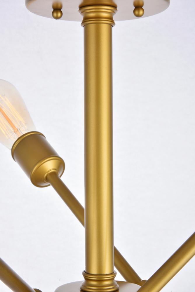 Modern sophistication with a jaunty presentation. Axel flush-mount ceiling lamps feature three adjustable crossing arms mounted on a circular base to direct light in any direction. A total of six light sources (bulbs not included) promises utility anywhere – kitchen, bathroom, or over the dining table. The absence of shades says industrial; the design says penthouse. The smooth steel hardware is finished in soft brass, adding a luxurious flair. Stylish and cutting-edge without being too eccentric.