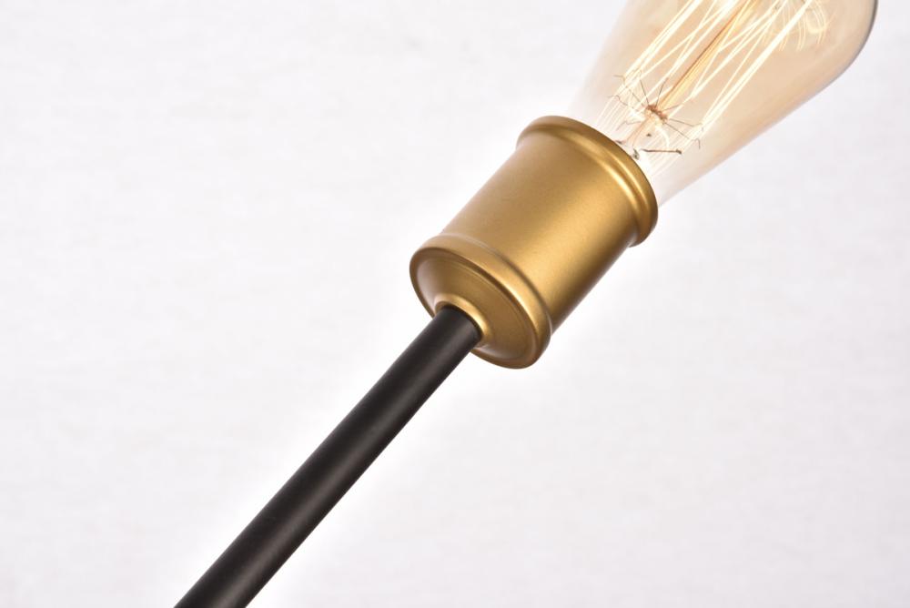 A postmodern design masquerading as a more traditional hanging fixture, the Axel collection is a study in diversity. Curiously placed arms each end with socket that orbits around a central circular frame. The classic Black and brass finish contrasts with the joyful eccentricity of the configuration to create a surprisingly unified whole that hangs playfully in a stairwell, living room, or dining room.