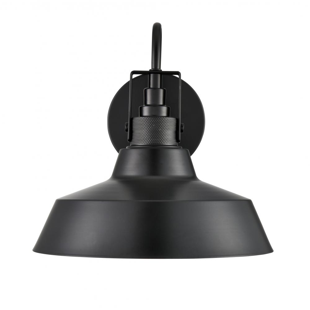 Vintage industrial design meets modern elegance in the Axell Collection of outdoor wall sconces. The classic camp-style design is finished in a powder coat black and completed with an acute attention to detail down to the hinged hardware. The subtle gold interior of the shade provides a warm and inviting glow for any entry or walkway.
