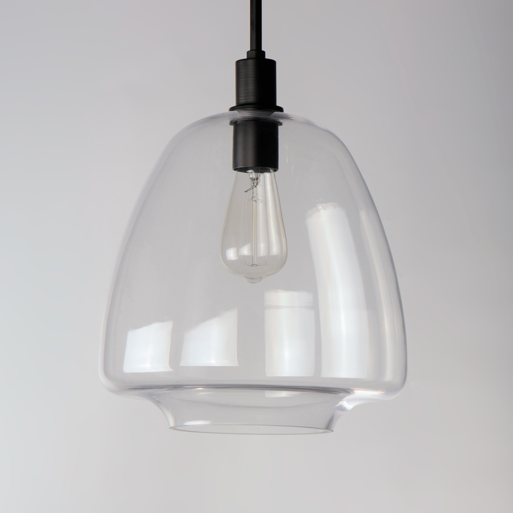 Pendants of Clear glass in unique elongated and undulating shapes with various sizes. This series pairs well with popular finishes in hardware and plumbing, giving you the flexibility to take chances with designer statement pieces. The metalwork is availab