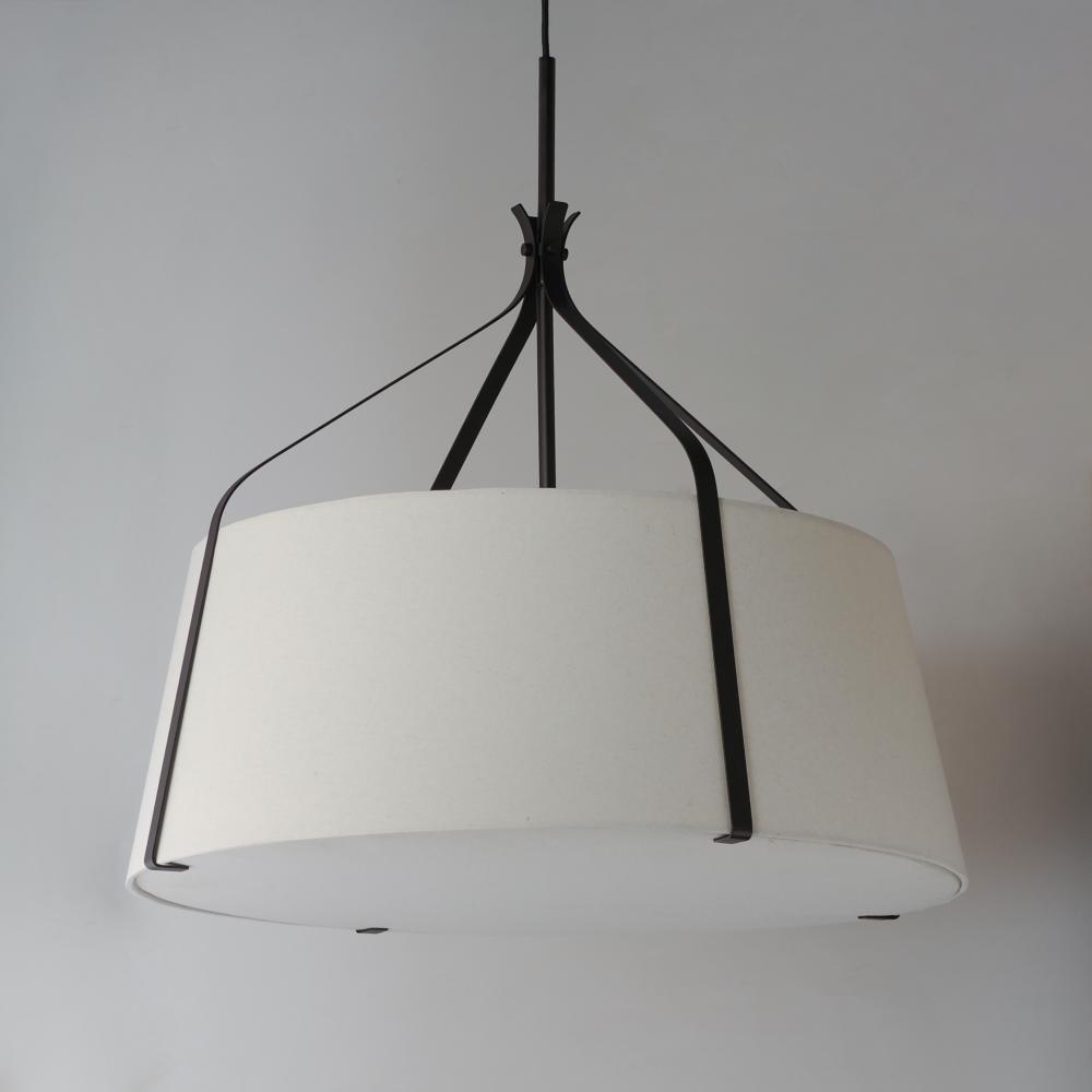 Inspired by timeless tailoring and architectural form, the Bandera collection reimagines the classic fabric shade pendant with refined, sculptural detail. A gracefully flared metal yoke suspends an elegant linen shade--offered in either Oatmeal with Dark B