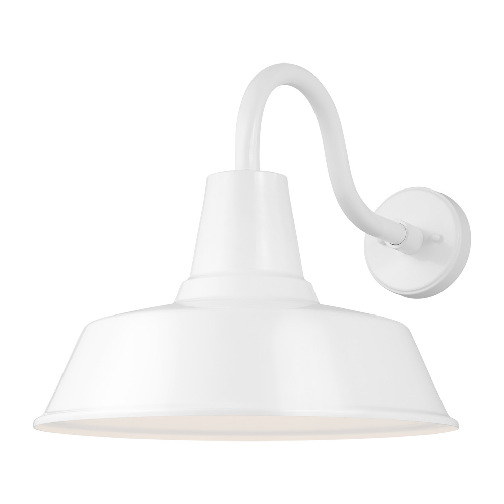 The Barn Light one light outdoor wall fixture in white creates a warm and inviting welcome presentation for your home's exterior. The classic Barn Lights are hand crafted in aluminum and coated in a Galvanized or Blacksmith finish. Ideal for large or heavily trafficked outdoor areas that need plenty of downward directed light. The oversized Barn Lights make great accents to any commercial lighting plan or residential garage entry, shed, or patio. To customize your look, a 6" extender is included with every fixture. Also available as Dark Sky with four size options to choose from.