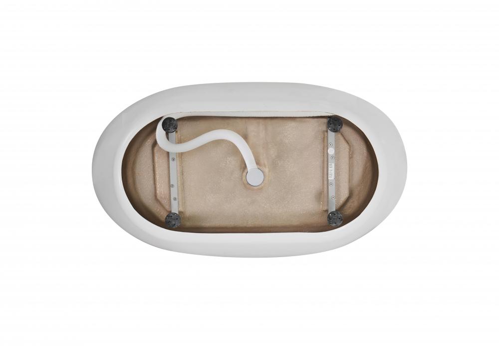 The foot leveler on a freestanding bathtub provides a simple yet effective solution for adjusting the height and ensuring stability on uneven surfaces.