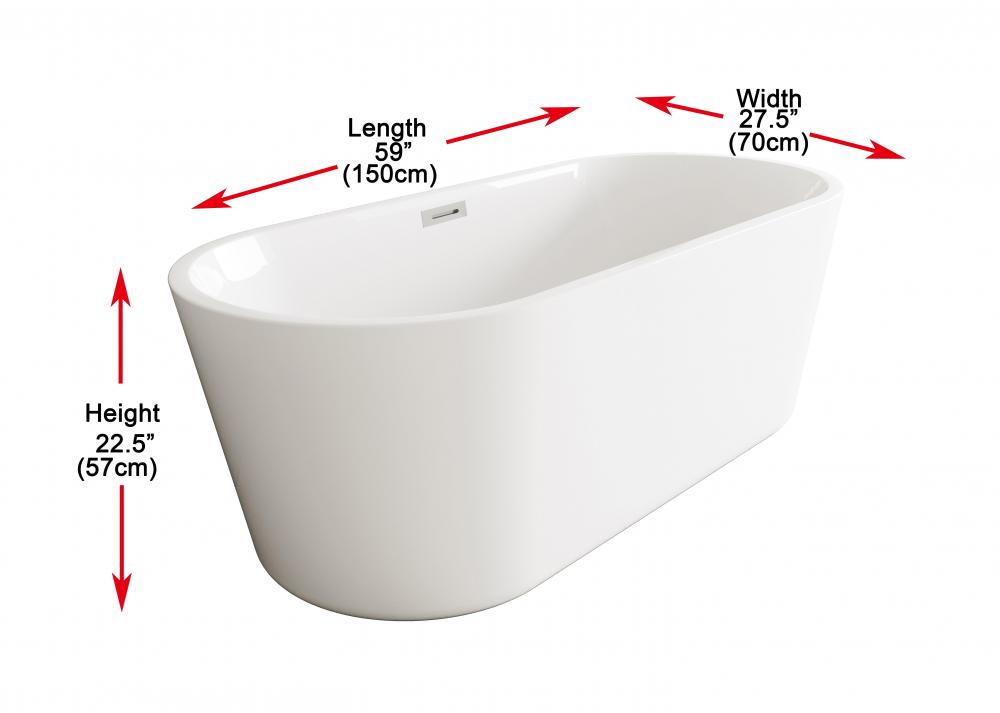 Elegant BT10659GW-WHT - Bathtub 59.0"27.5"22.0" GW with WHT drain kit