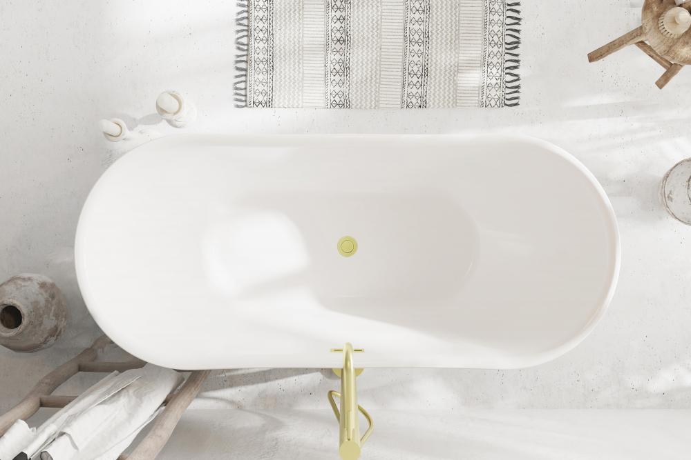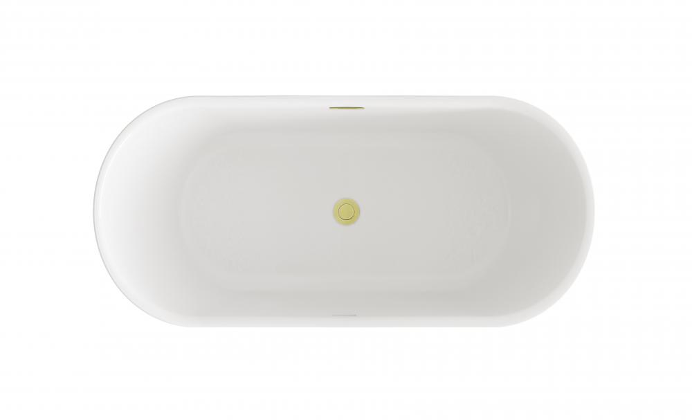 The bathtub comes equipped with a 47-inch drain tube that attaches seamlessly to a 2.7-inch drain, with customizable drain trim finishes including brushed gold, brushed nickel, matte black, chrome, and polished white to complement your bathroom decor.