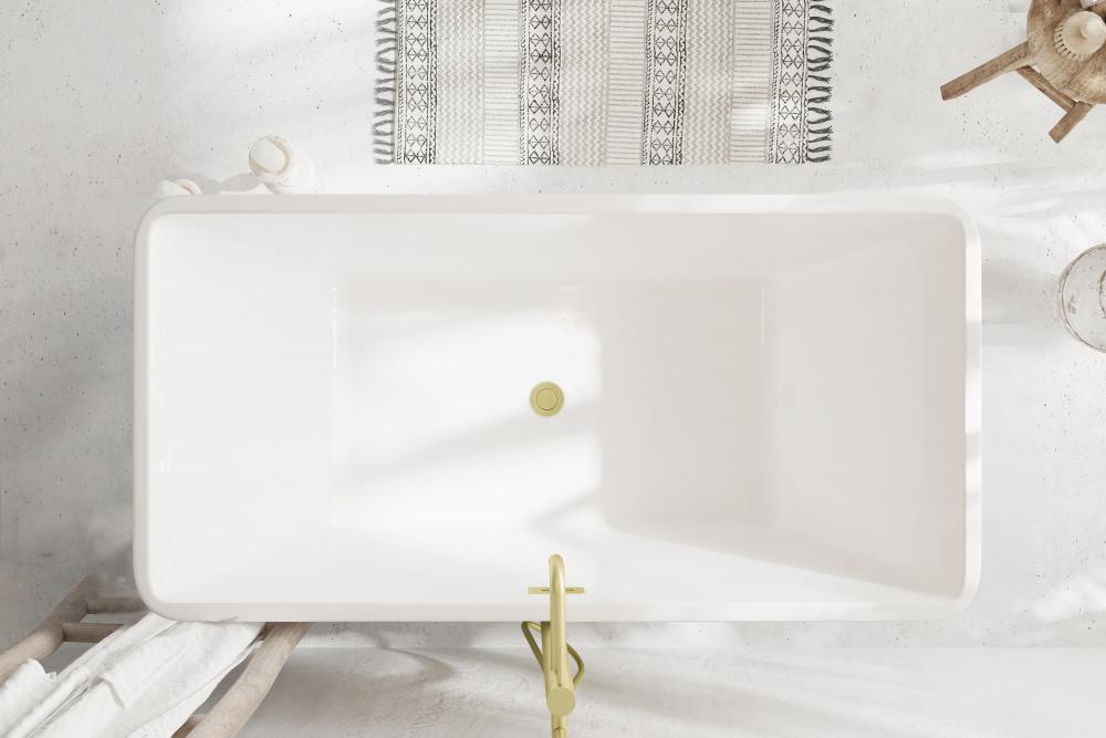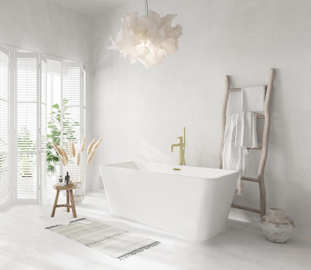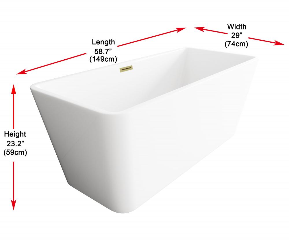 Immerse yourself in the ultimate relaxation experience with this elegant freestanding soaking bathtub. for a modern, minimalist aesthetic, the rectangular freestanding bathtub is the perfect choice. Its sharp, clean lines and structured form bring a contemporary edge to any bathroom. The smooth, rounded rim offers comfortable arm support, making it the ideal spot to unwind. Equipped with a pop-up drain and integrated overflow, this tub seamlessly combines convenience and style. with a generous capacity and 15-inch soaking depth, it's perfect for those looking to indulge in a deep, luxurious soak. Available with customizable drain trim finishes like brushed gold, matte black, and more, this bathtub is designed to fit your unique style. Durable and easy to install with adjustable foot levelers, this tub is both a statement piece and a functional retreat in your home.