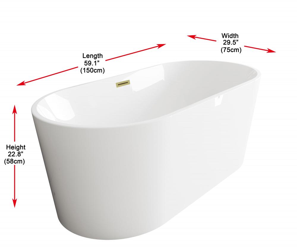 Bathtub 59.1 x 29.5 x 23 GW with BGD drain kit
