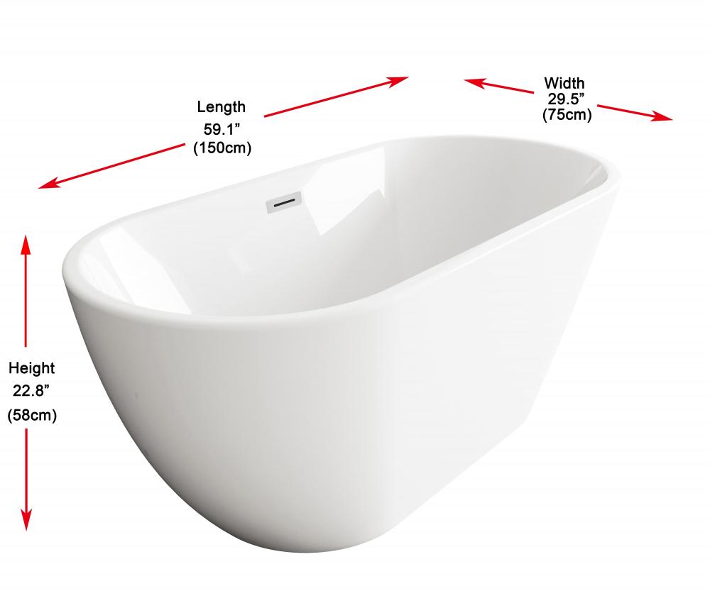 Elegant BT30359GW-WHT - Bathtub 59.1 x 29.5 x 23 GW with WHT drain kit
