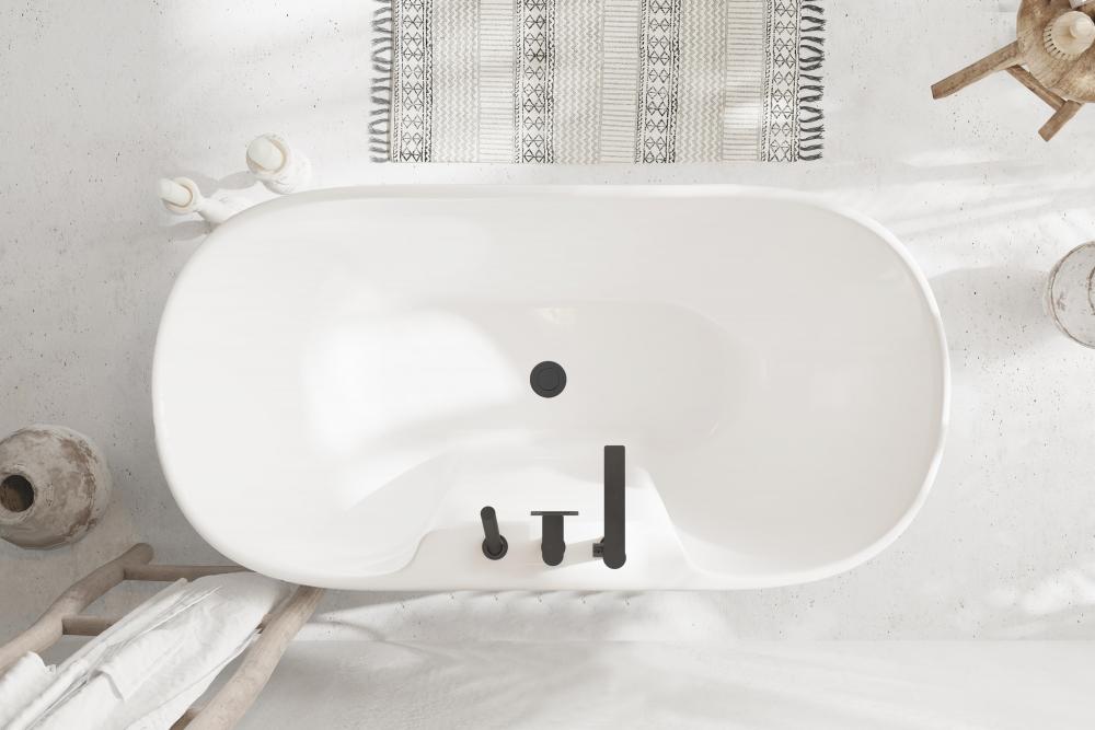 This modern bathtub is designed for a deck-mounted faucet, with faucet holes left un-drilled to allow you to customize their placement based on your unique layout and design preferences during installation.