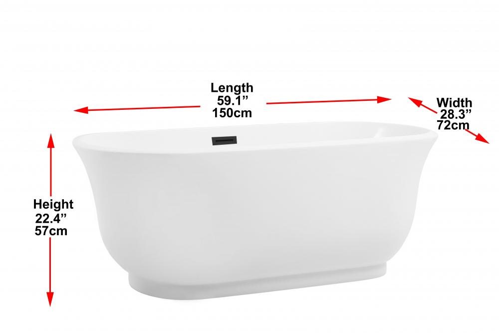 Elegant BT10259GW-MBK - Bathtub 59.1x28.3x22.4 GW with MBK drain kit
