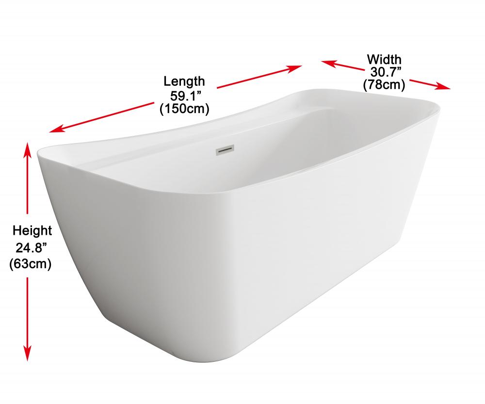 Bathtub 59.1x30.7x24.8 GW with BNK drain kit