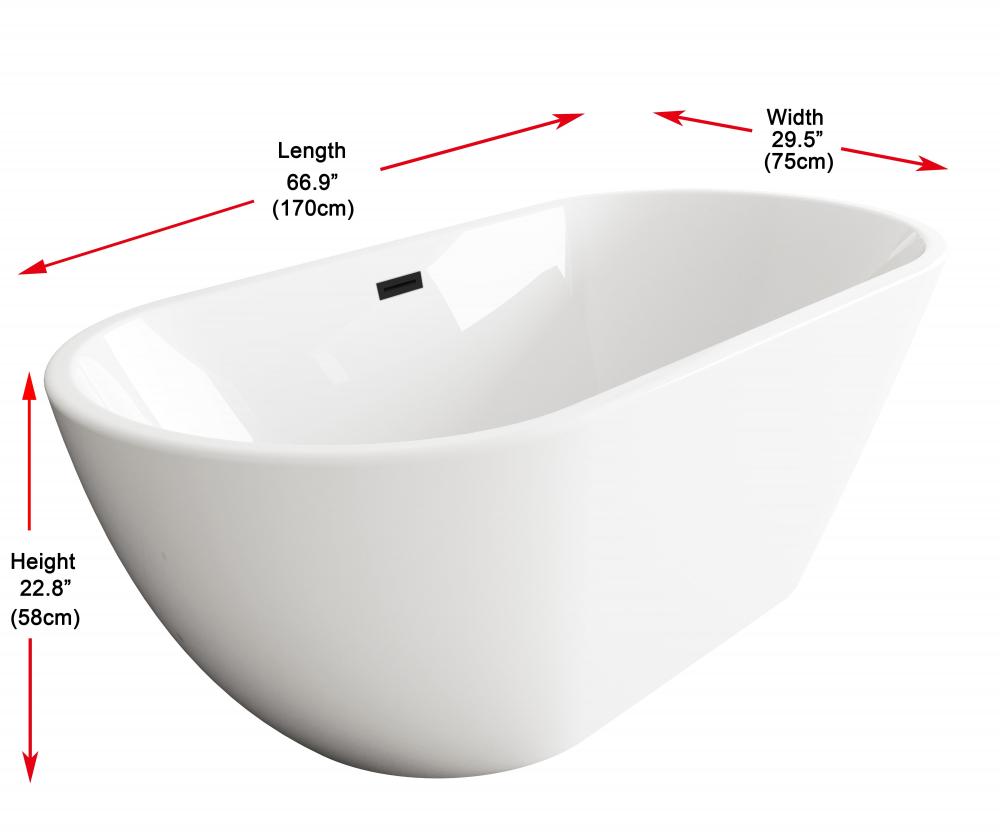 Bathtub 66.9 x 29.5 x 23 GW with MBK drain kit