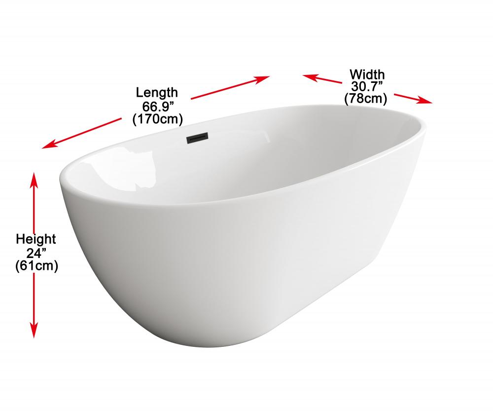 Bathtub 66.9"30.7"24.0" GW with BGD drain kit