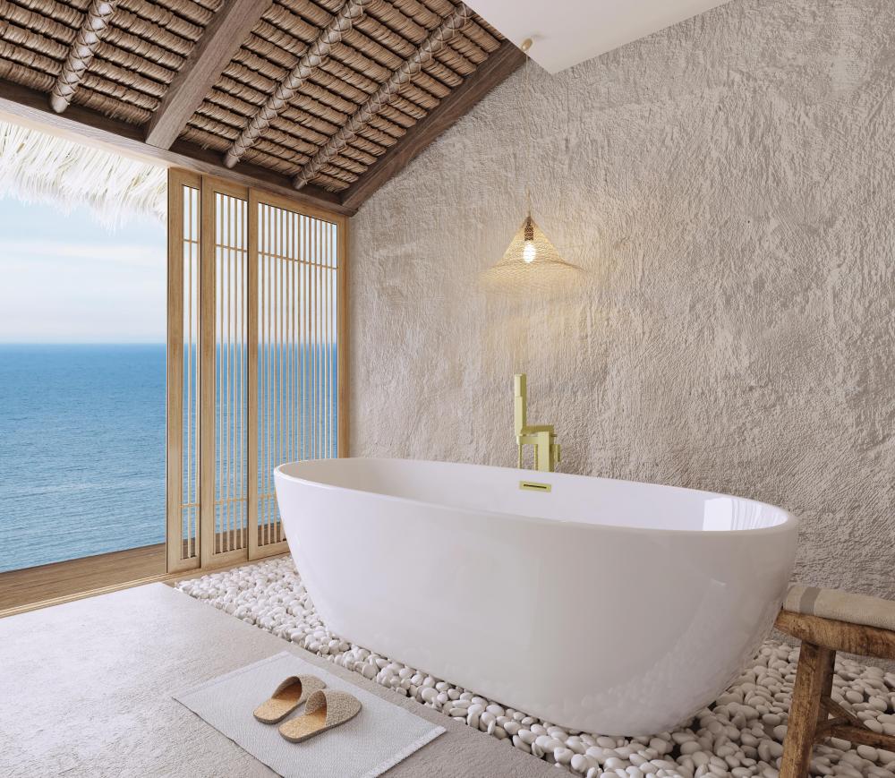 Crafted from durable, premium acrylic, this bathtub boasts a long-lasting, glossy white finish that not only enhances its aesthetic appeal but also ensures durability and easy maintenance.